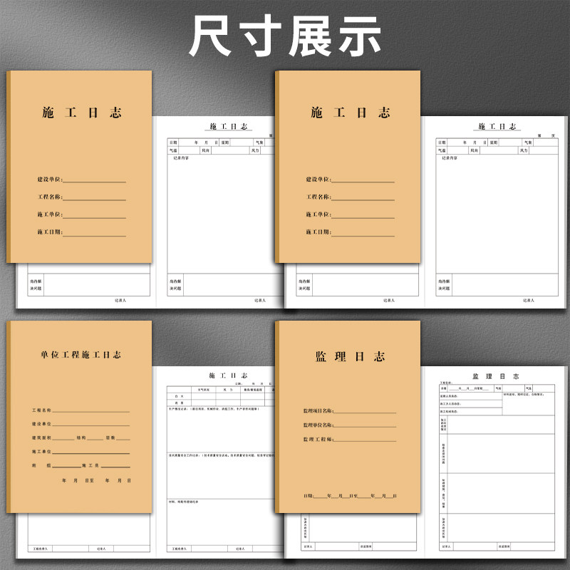a4工地施工日志记录本双面加厚2025新版16k安全监理通用工程施工进度装修手册记录本工作记工进度记事通用