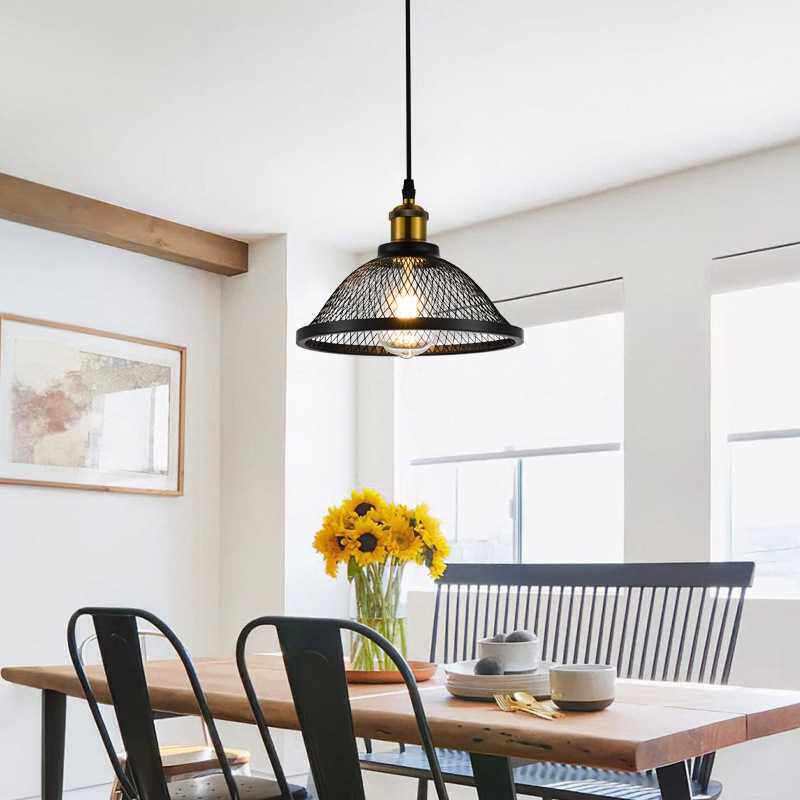 创意铁艺餐厅吊灯复古黑色中古风灯具厨房吧台灯饰单头灯具亚马逊