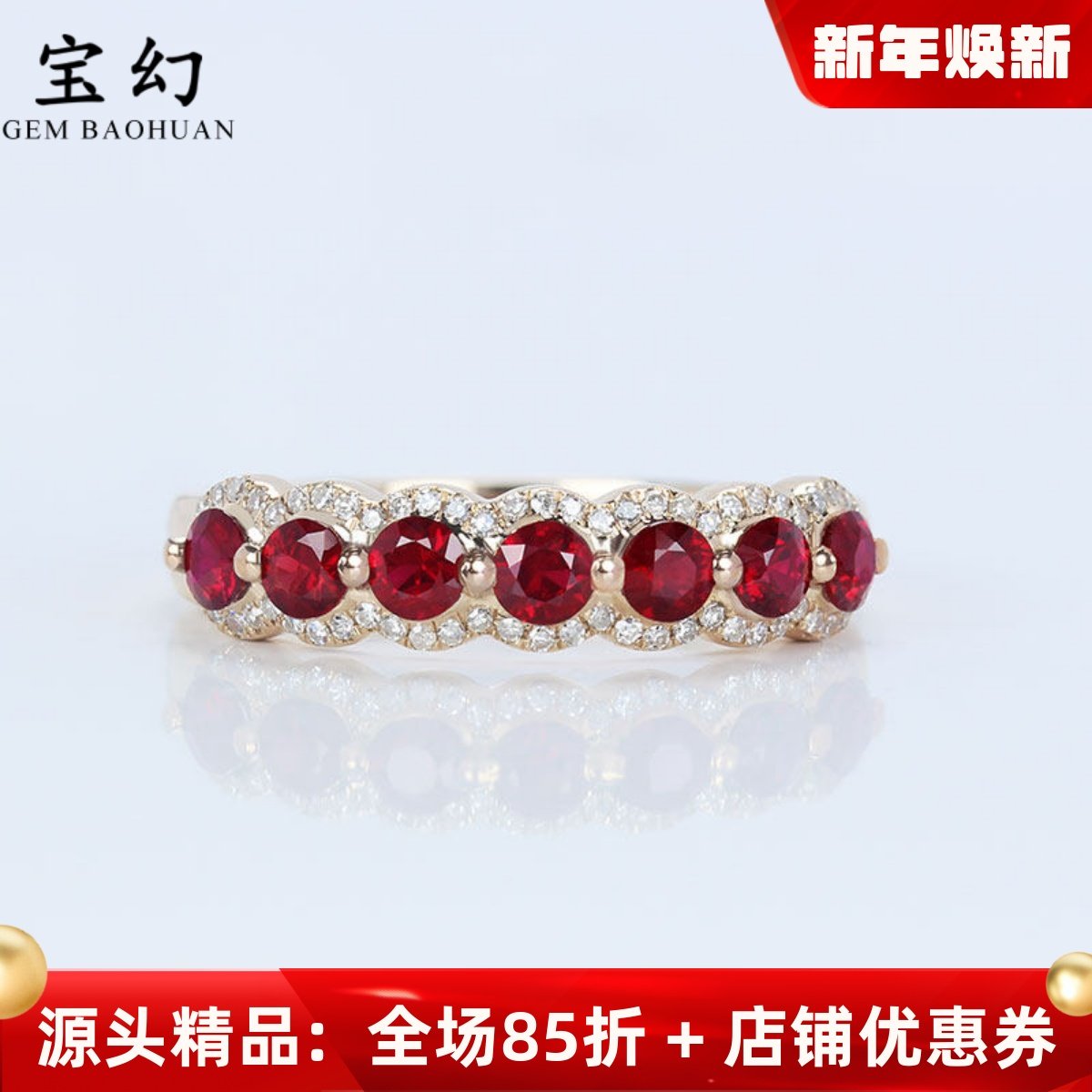 18K玫瑰金天然鸽血红宝石钻石排戒 正圆形高火彩女款戒指指环定制
