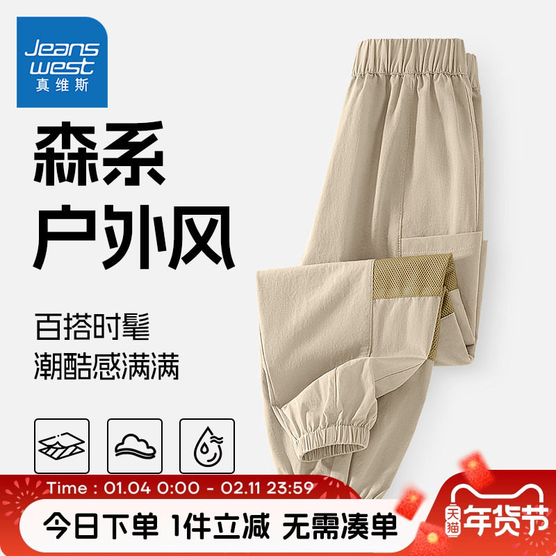 真维斯童装男童裤子夏季薄款防蚊裤儿童工装裤男大童冰丝运动裤夏