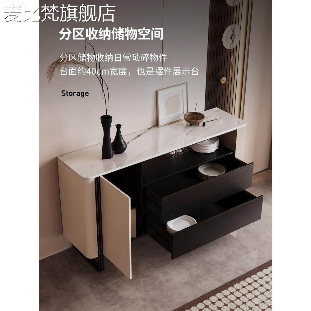 麦比梵意式极简餐边柜北欧微晶石储物柜多功能碗柜茶水柜入户门厅玄关柜摆件饰品床笠拉车