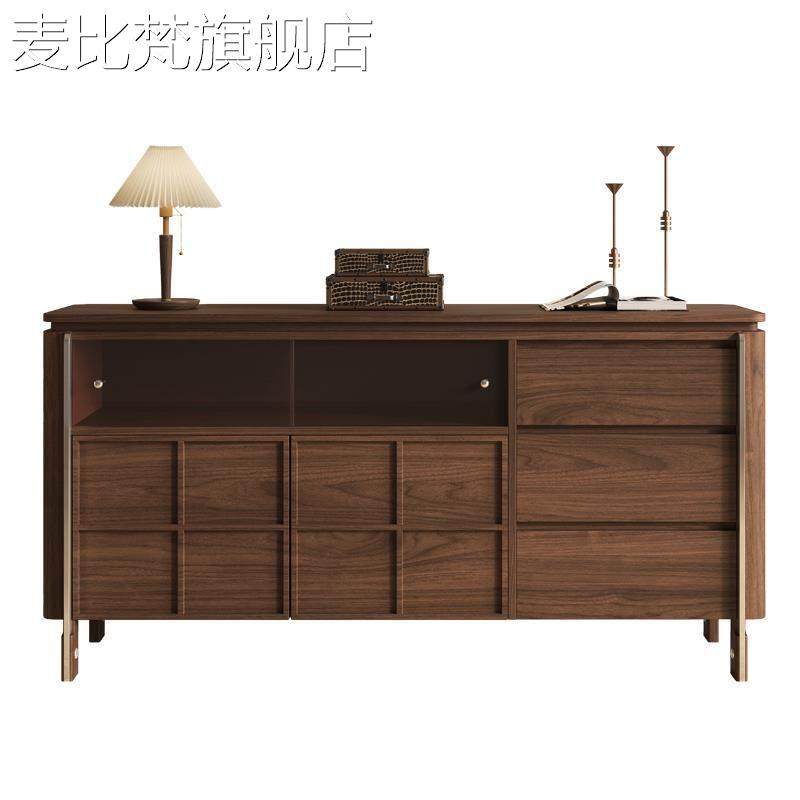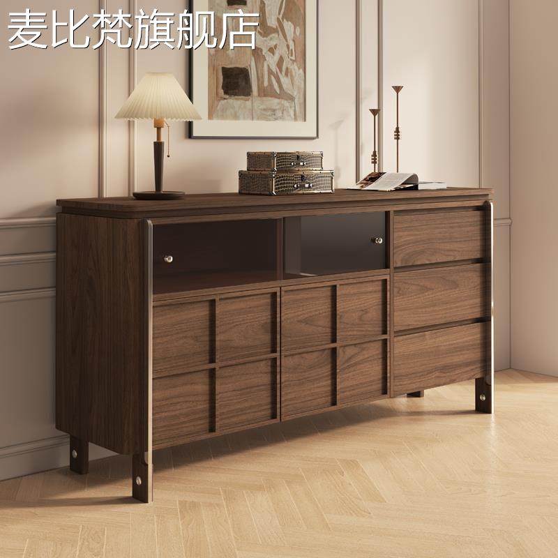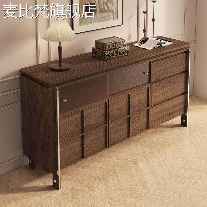 麦比梵实木餐边柜中古风胡桃木收纳柜客厅酒柜茶水柜?具车入户隔断玄关柜摆件饰品床笠拉车