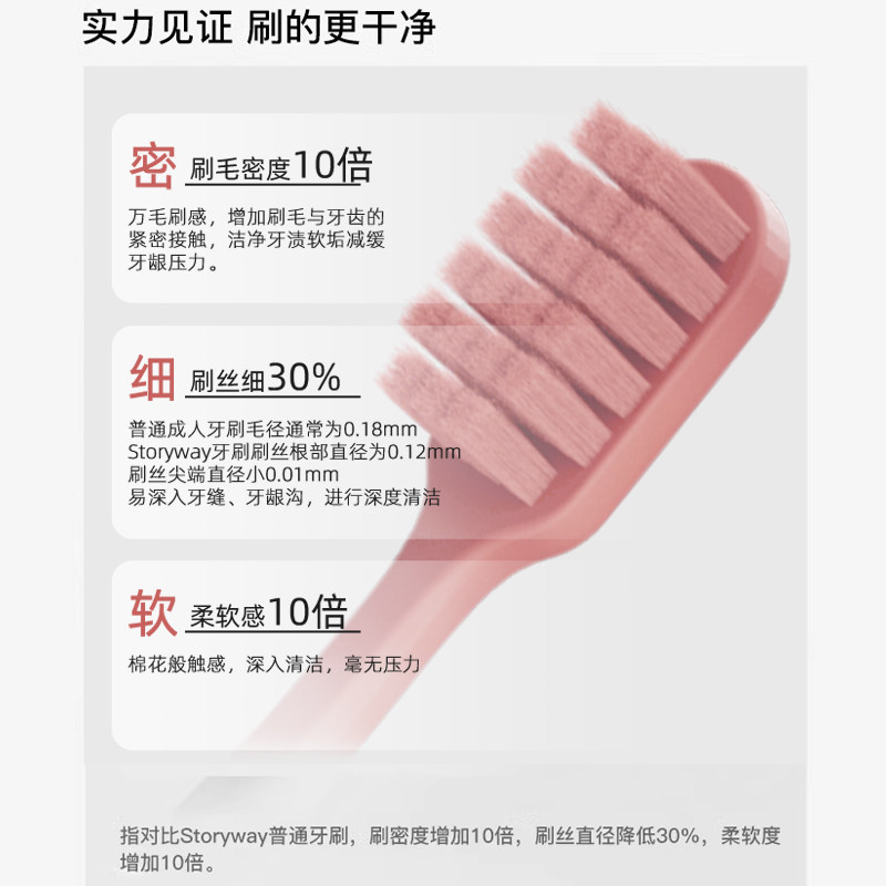 Storyway牙刷成人软毛清洁万毛宽头护龈软情侣孕妇礼盒装牙齿牙龈