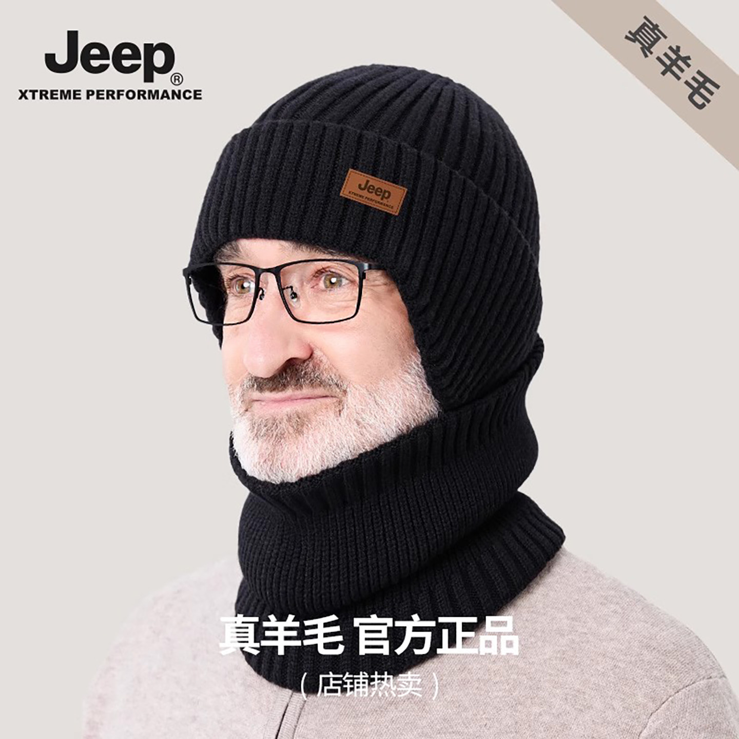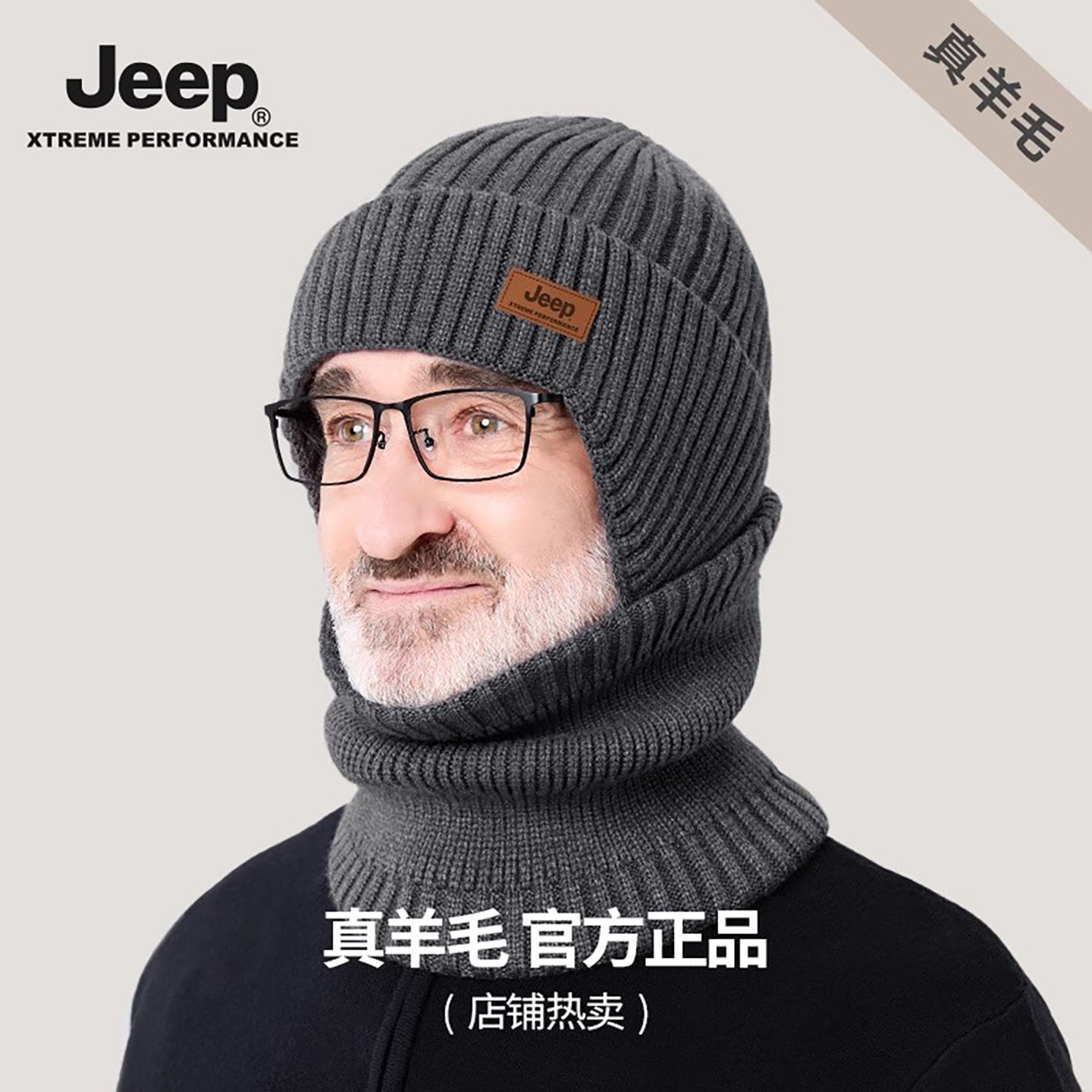 jeep吉普毛线帽子男士针织羊毛混纺帽保暖加绒防风防寒防冻冬季男