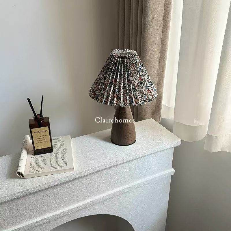 中古风百褶台灯高颜值复古卧室简约高级感床头小夜灯客厅护眼语音