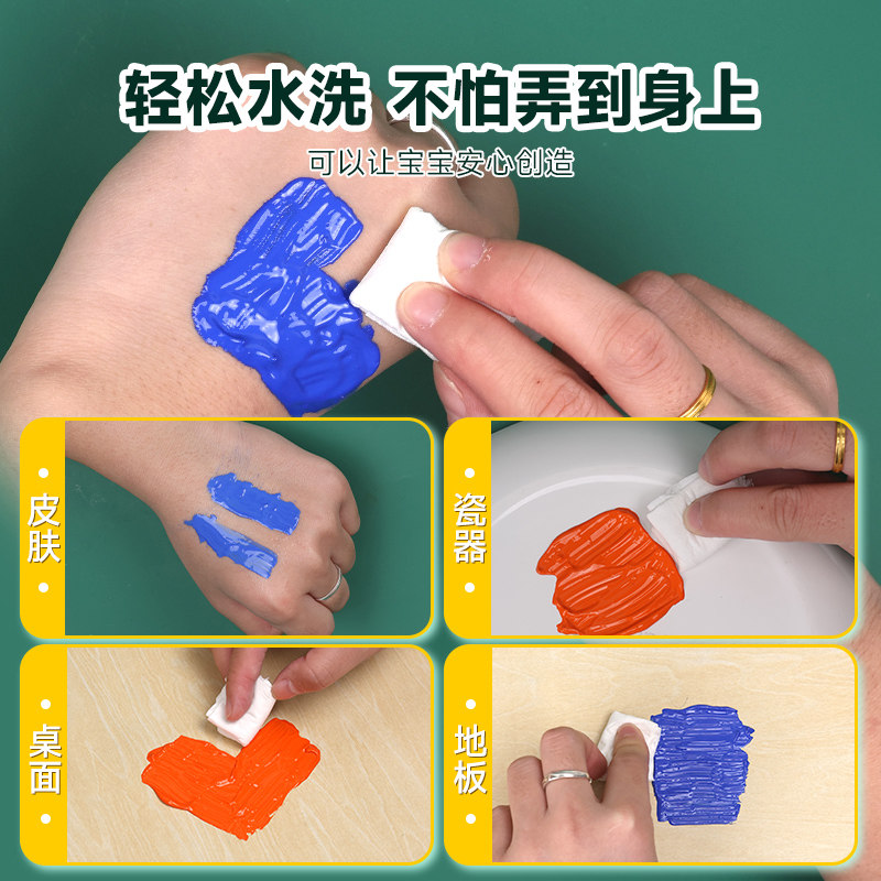 青竹儿童袋装水粉颜料套装小学生幼儿园专用儿童颜料画画儿童涂色颜料12色24色黑板报无毒可水洗手指画颜料