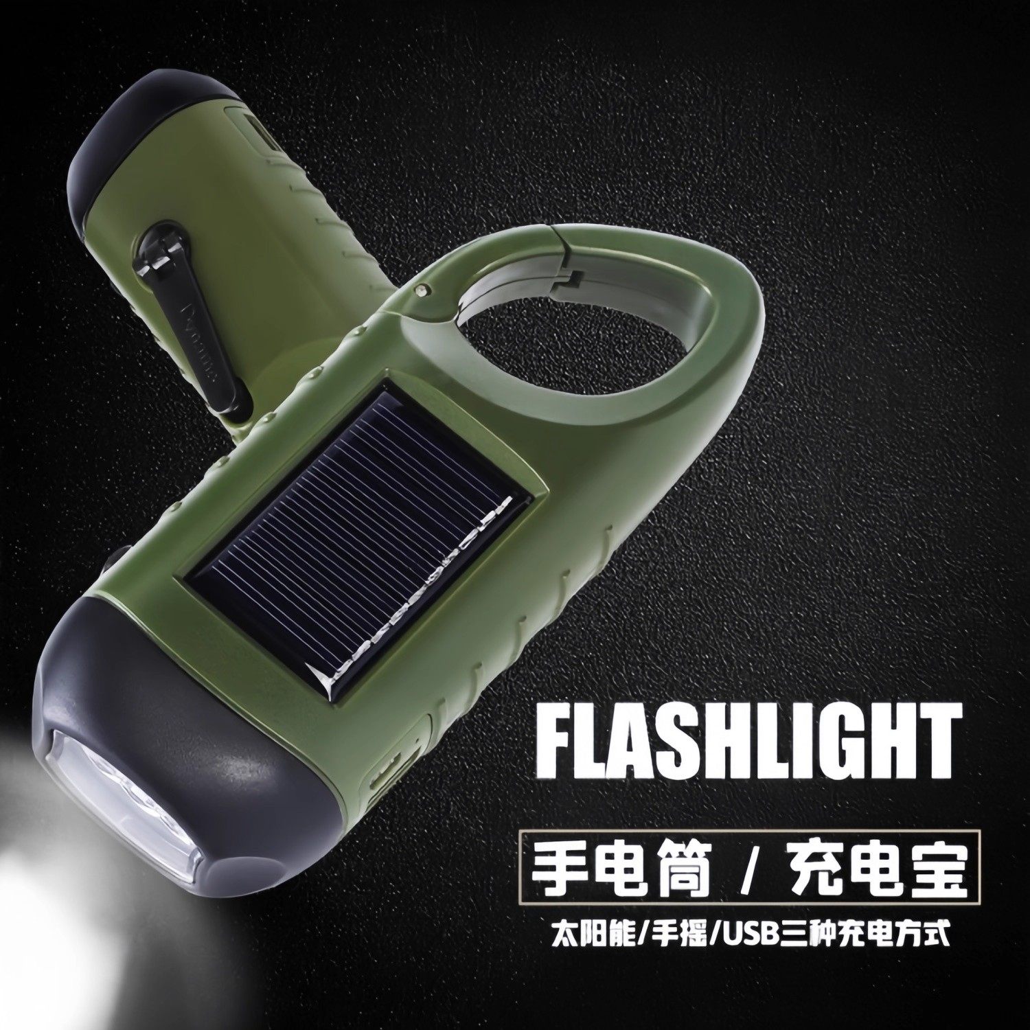 应急户外照明手电太阳能手摇充电应急灯多功能手电筒充电宝便携式