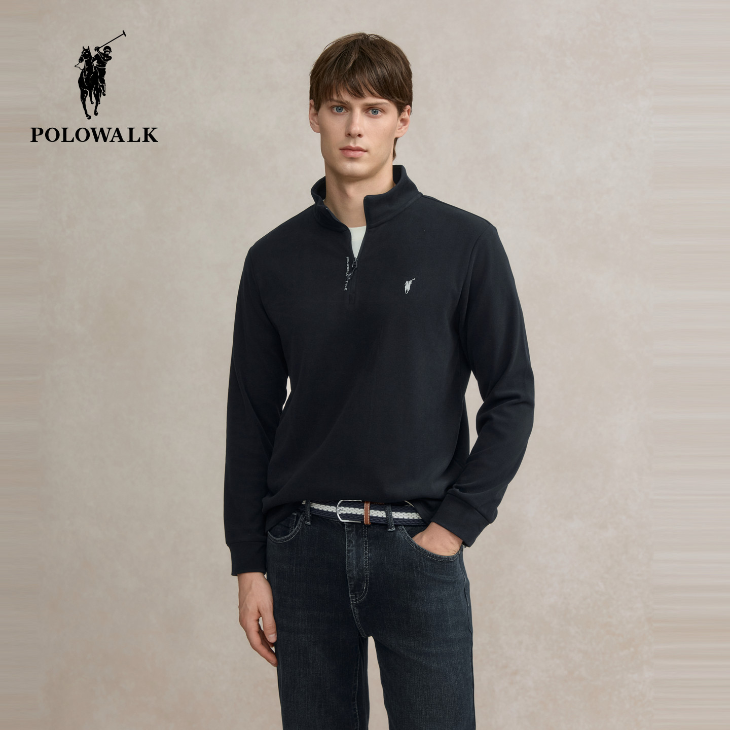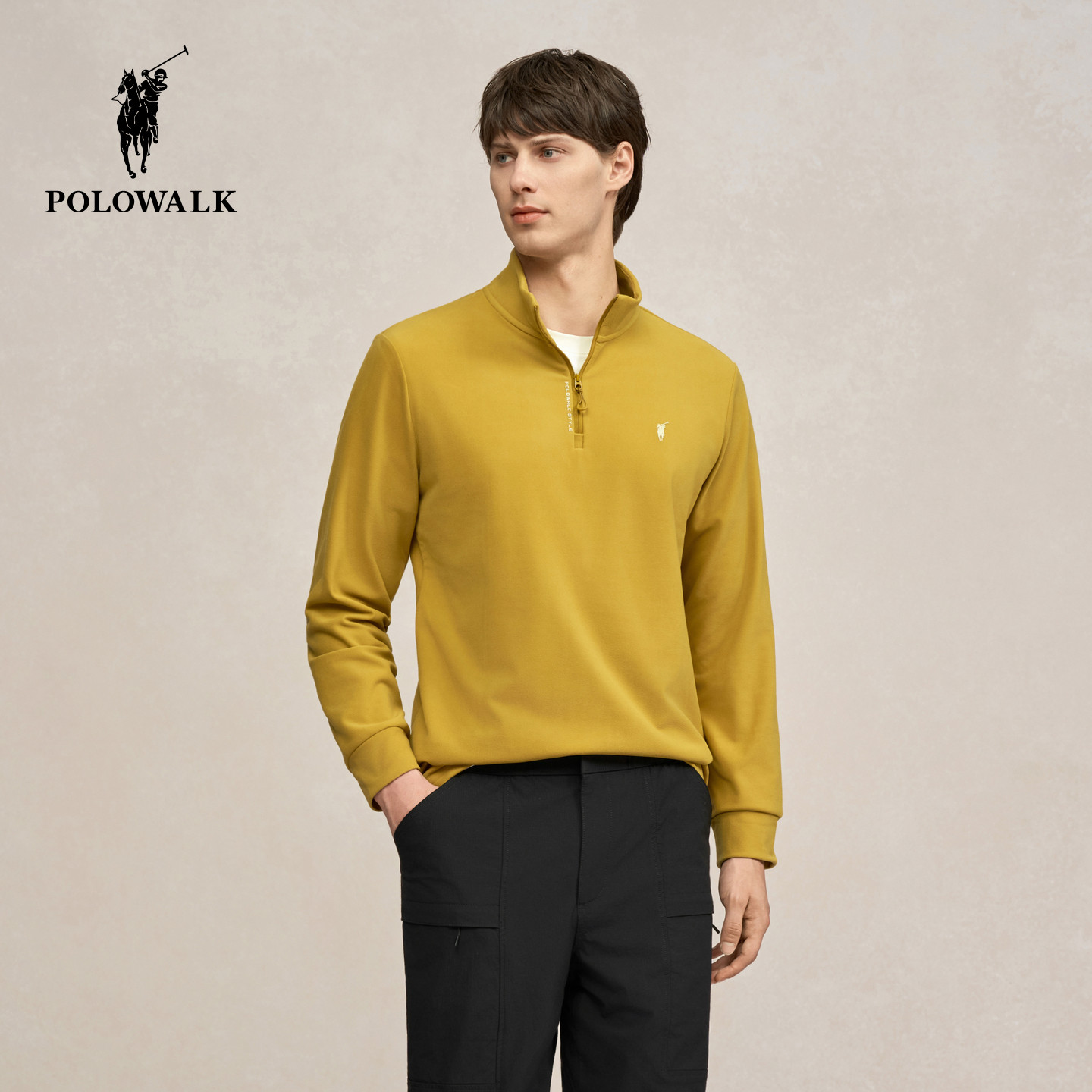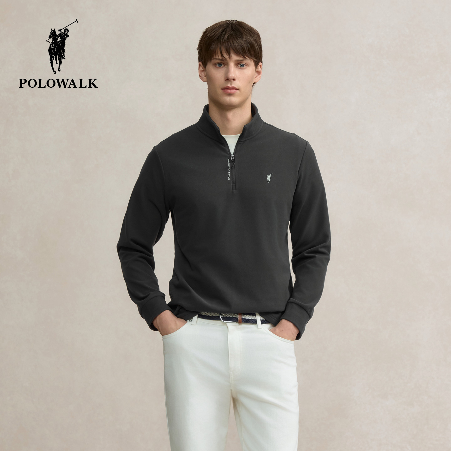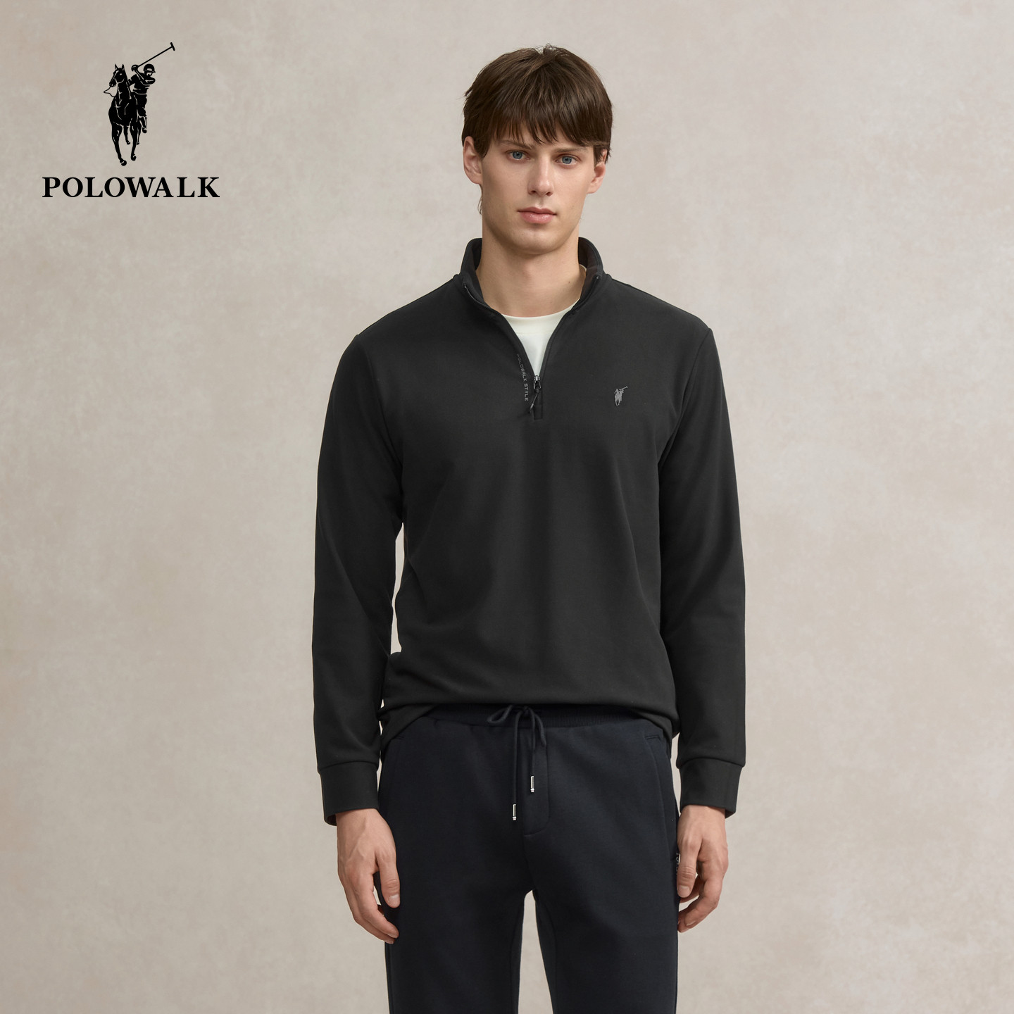【7A抗菌】POLOWALK男式长袖T恤2025冬季新品百搭休闲半拉链上衣