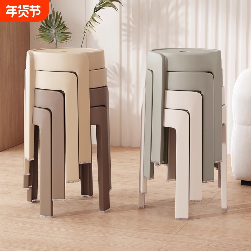 北欧时尚圆凳塑料加厚成人凳子可叠放餐桌板凳家用椅子备用凳高凳