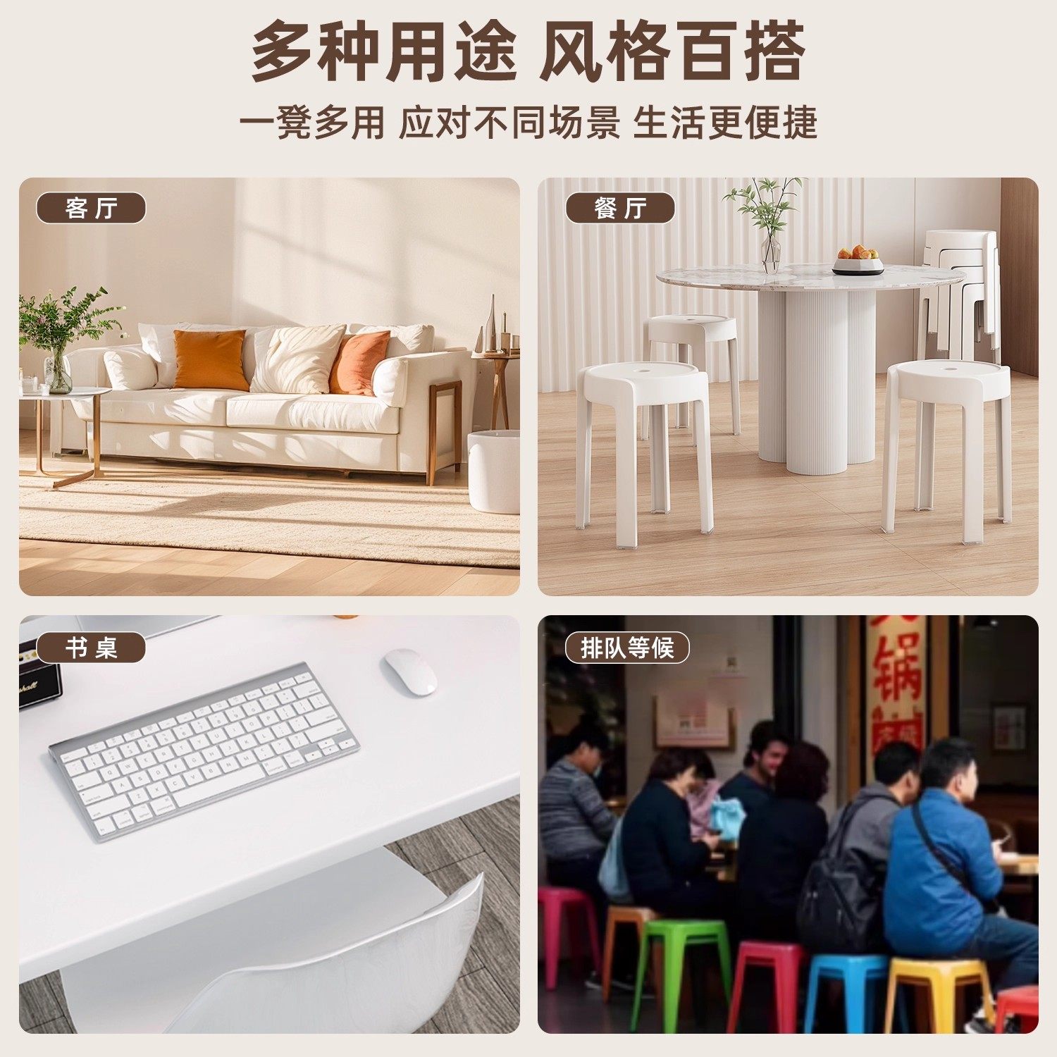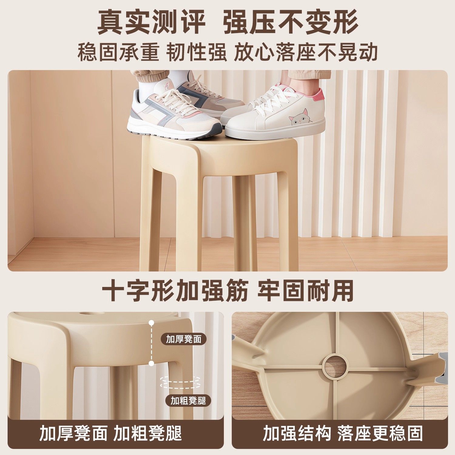 塑料凳子家用软包可叠放加厚结实耐用轻奢高级感圆凳子备用高椅子