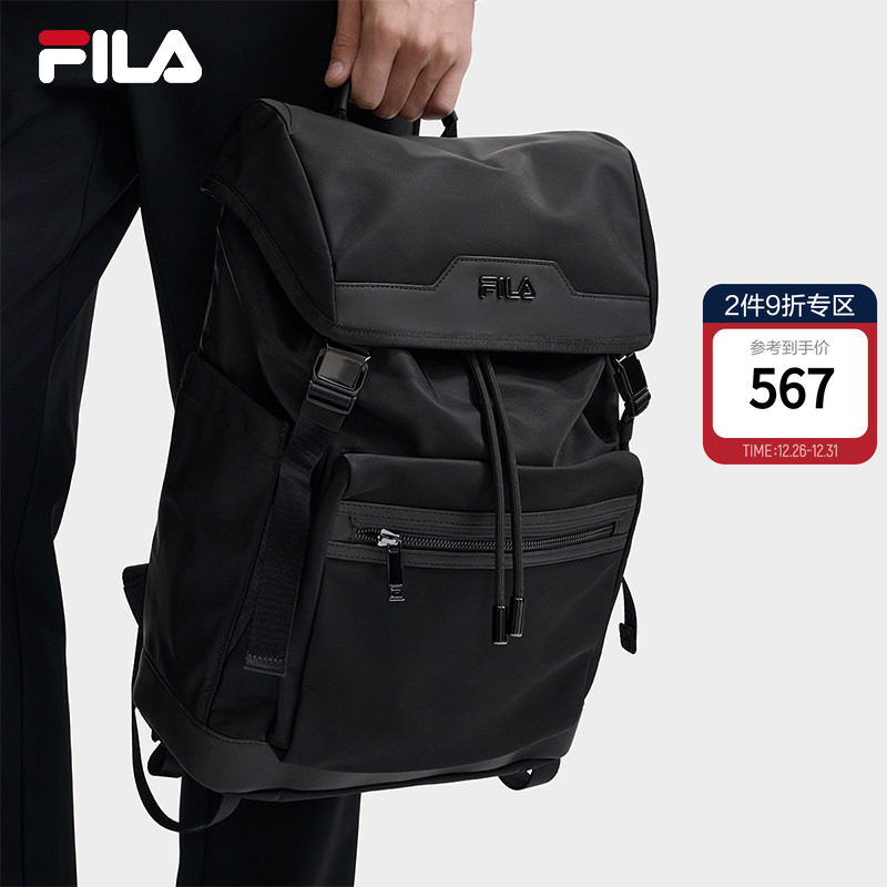黑武士|FILA 斐乐官方男士背包百搭休闲翻盖双肩包书包通勤电脑包