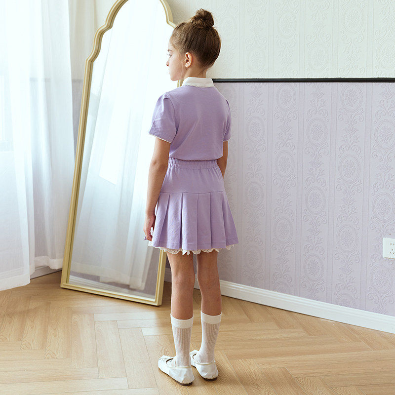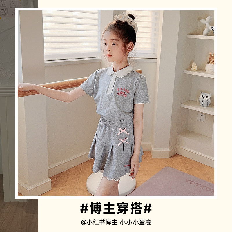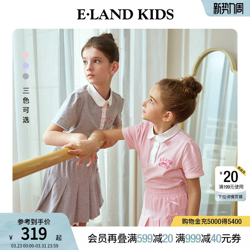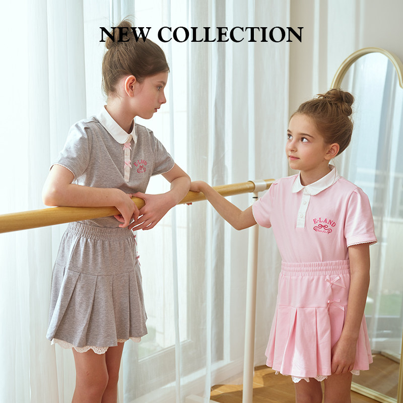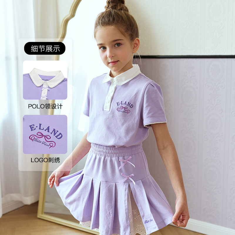 【运动芭蕾】eland kids衣恋夏女童套装学院风T恤百褶短裙两件套