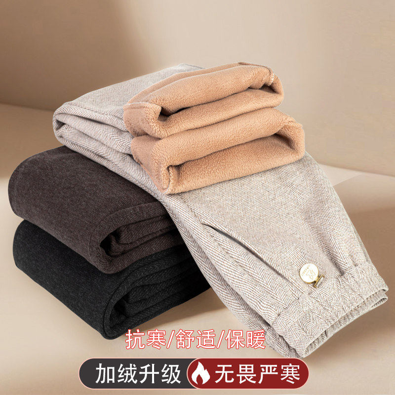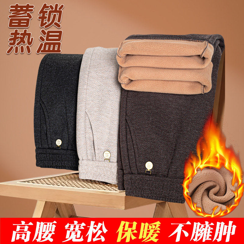 中老年人女裤秋冬加绒长裤外穿妈妈裤子宽松直筒高腰奶奶春秋大码