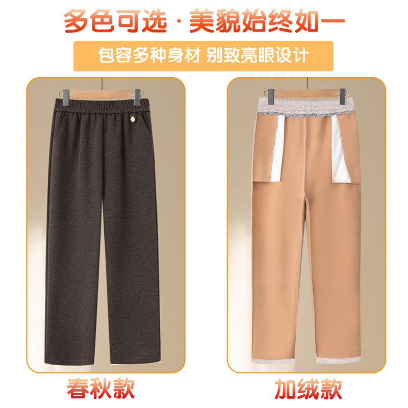 妈妈裤子春秋款松紧高腰弹力中老年女裤宽松大码直筒奶奶加绒长裤