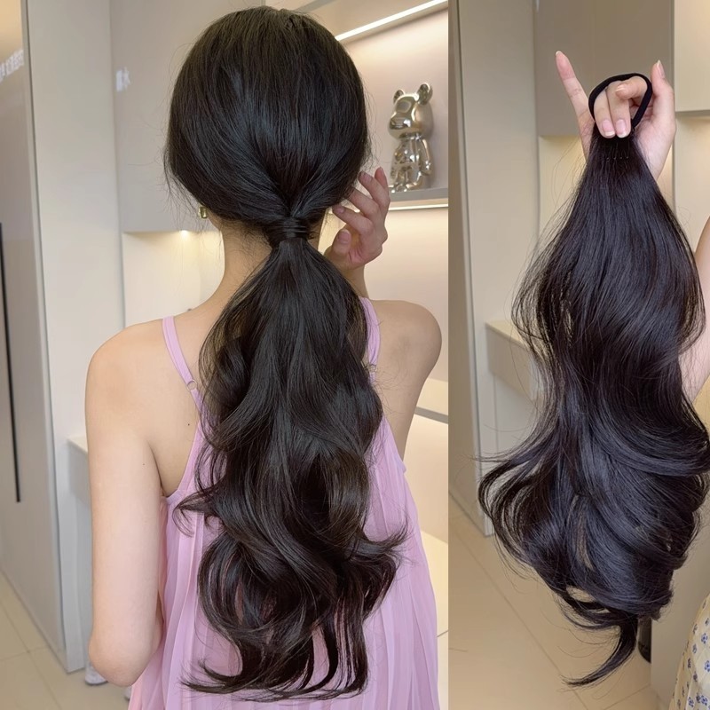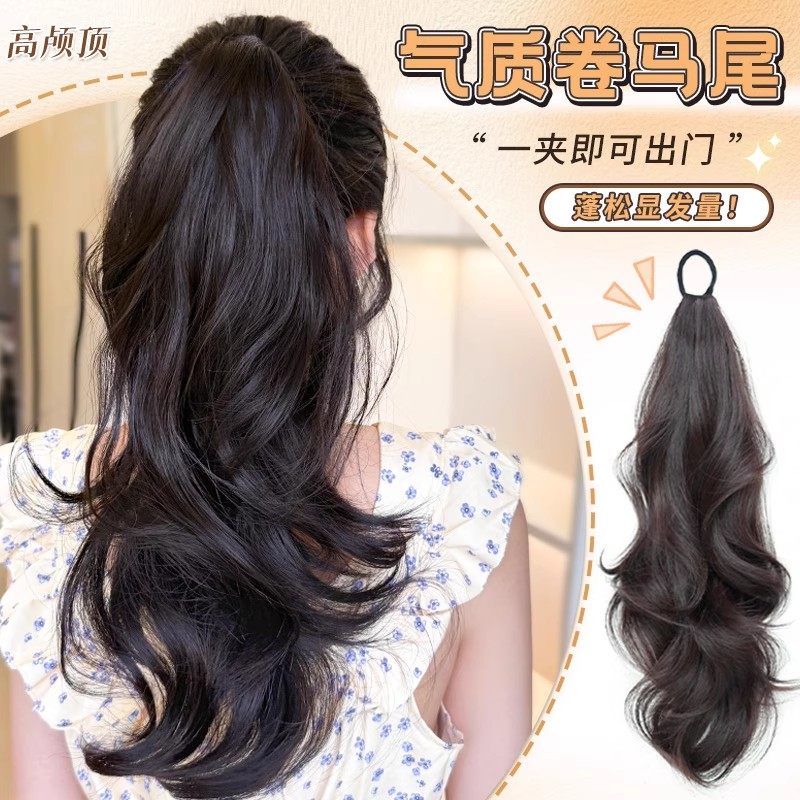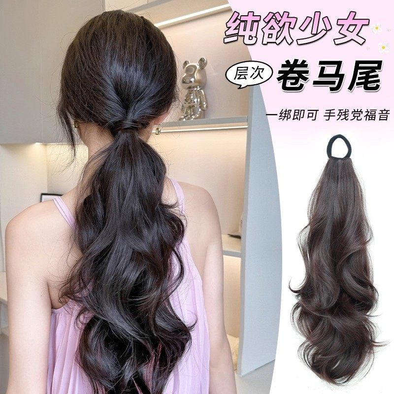 低马尾假发辫子女人鱼卷马尾绑带式大波浪网红低扎气质蓬松假马尾