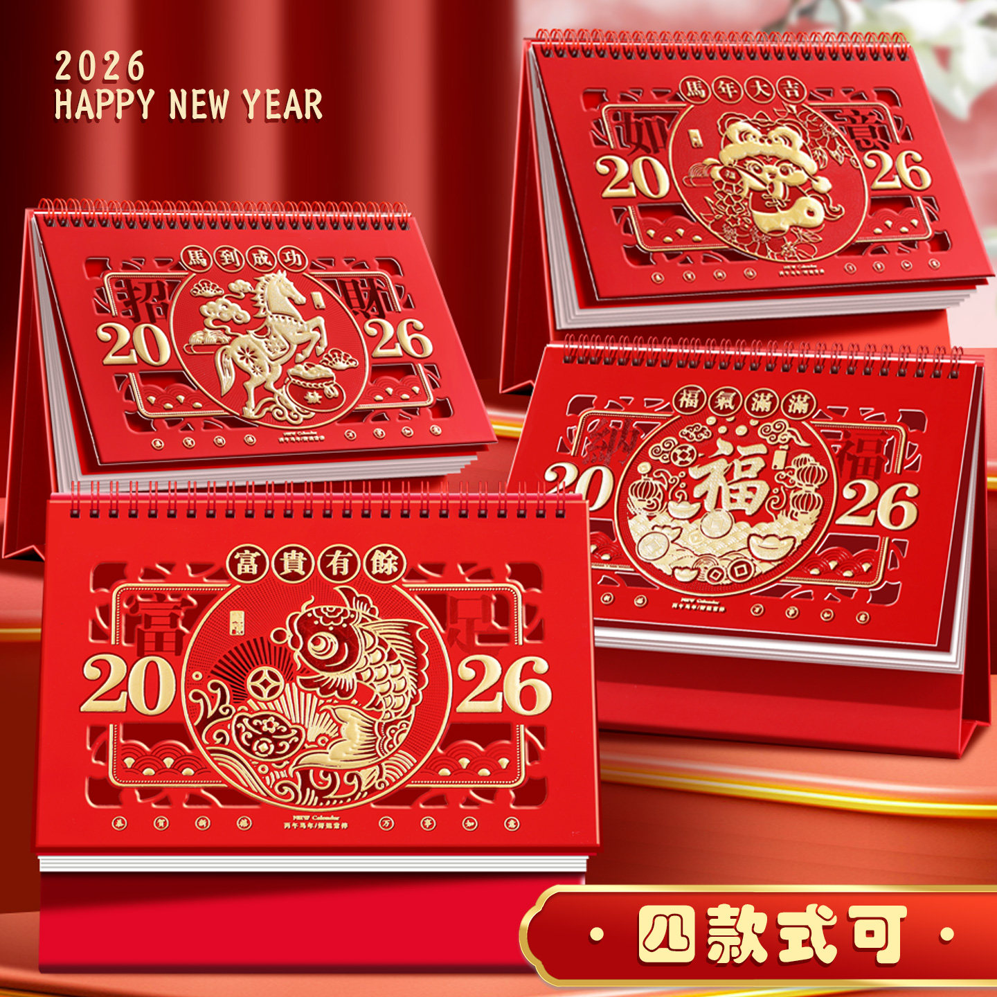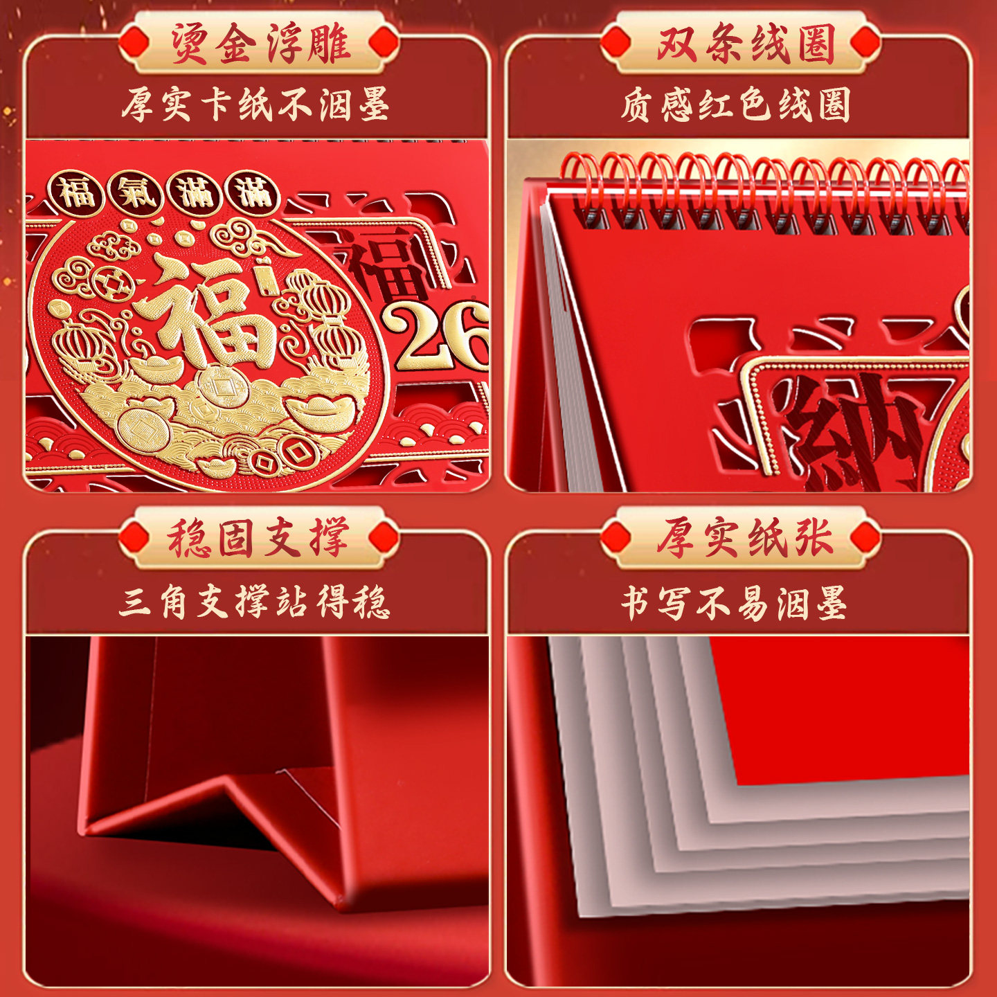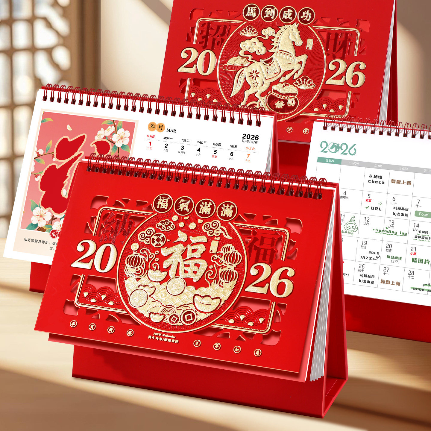 台历定制2026新款日历办公室创意摆件马年红色大号工作计划记事表