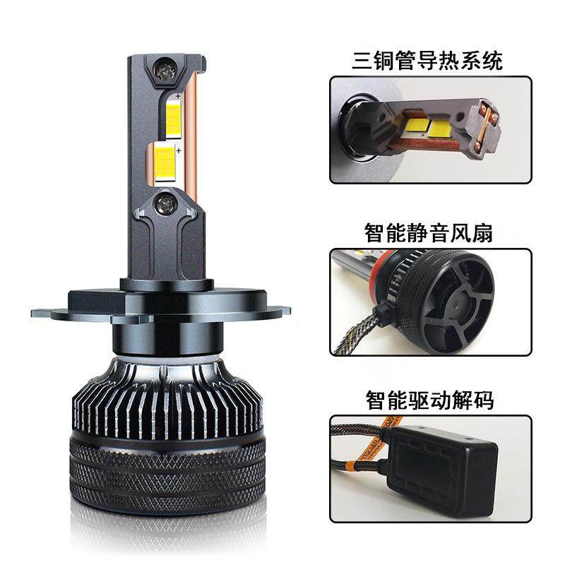 高亮H1汽车灯泡120W升级三铜管导热H7 H11 H4 远近一体 LED前大灯
