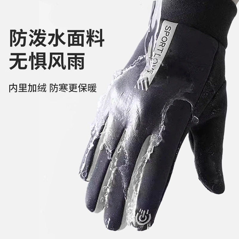 骑行手套男秋冬季自行公路车电动车全指加绒保暖手套御寒防风防水