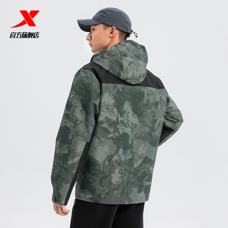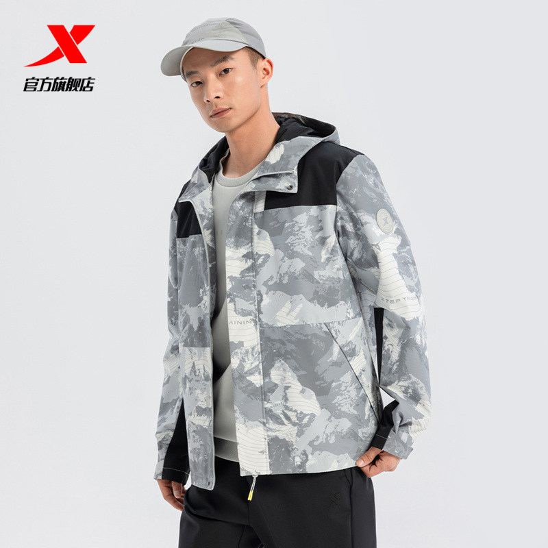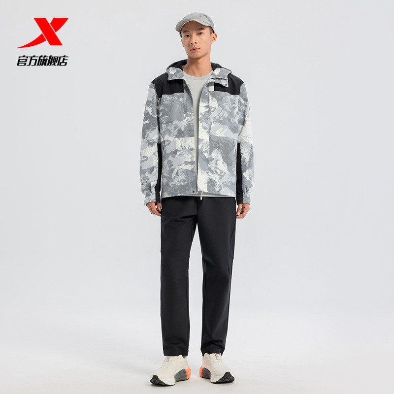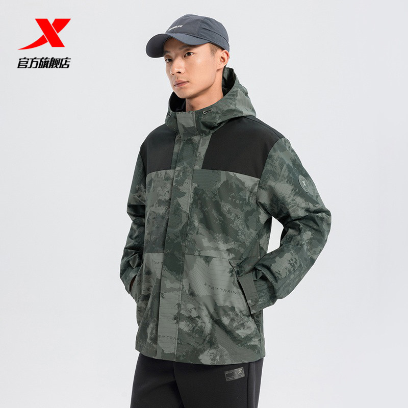 特步户外保暖外套男款2025秋冬新款拼色休闲运动风衣975129160090