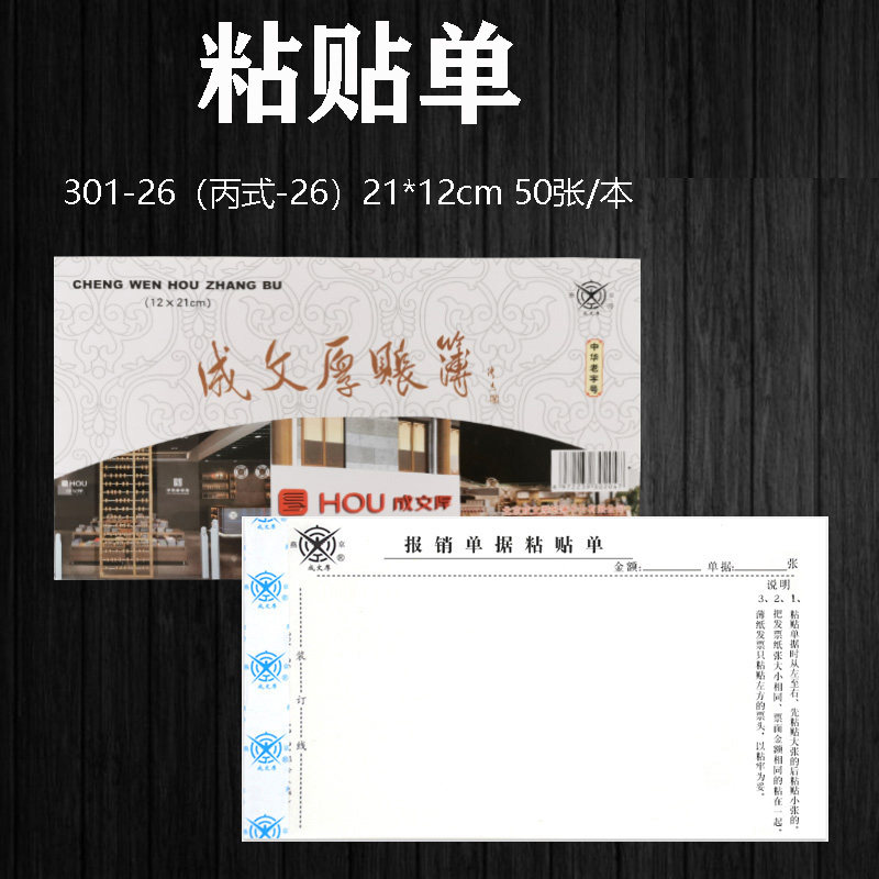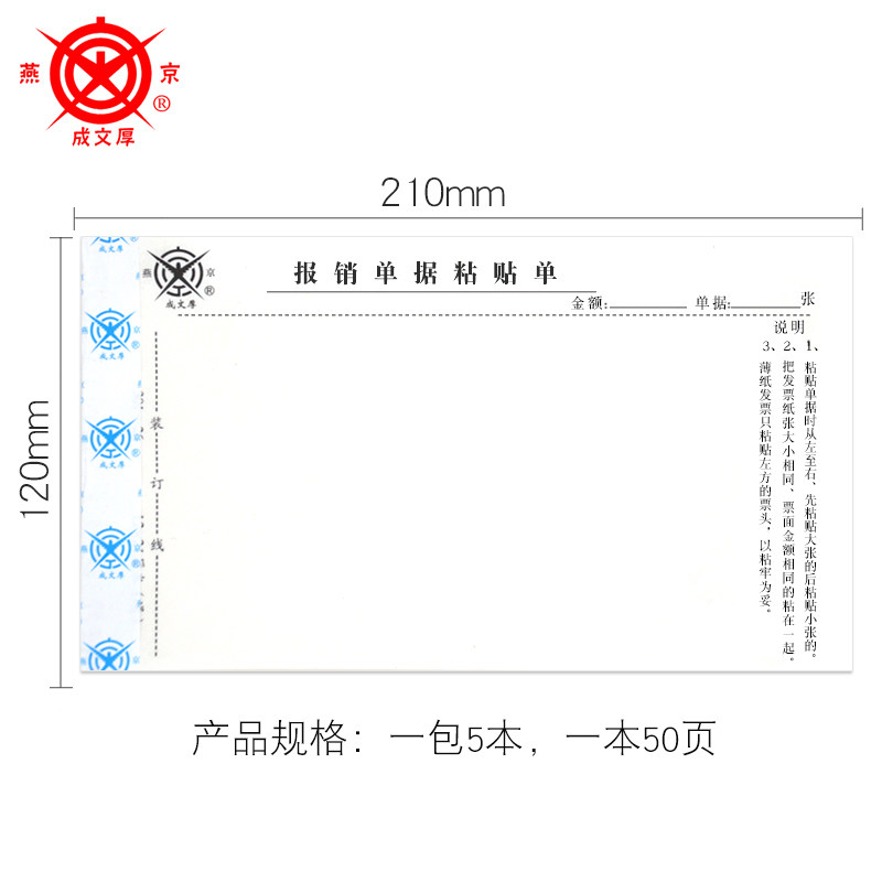 5本成文厚报销单据粘贴单21*12cm 原始凭证粘贴单票据单据附件粘贴单丙26财务办公用品粘单黏贴单附件背书单