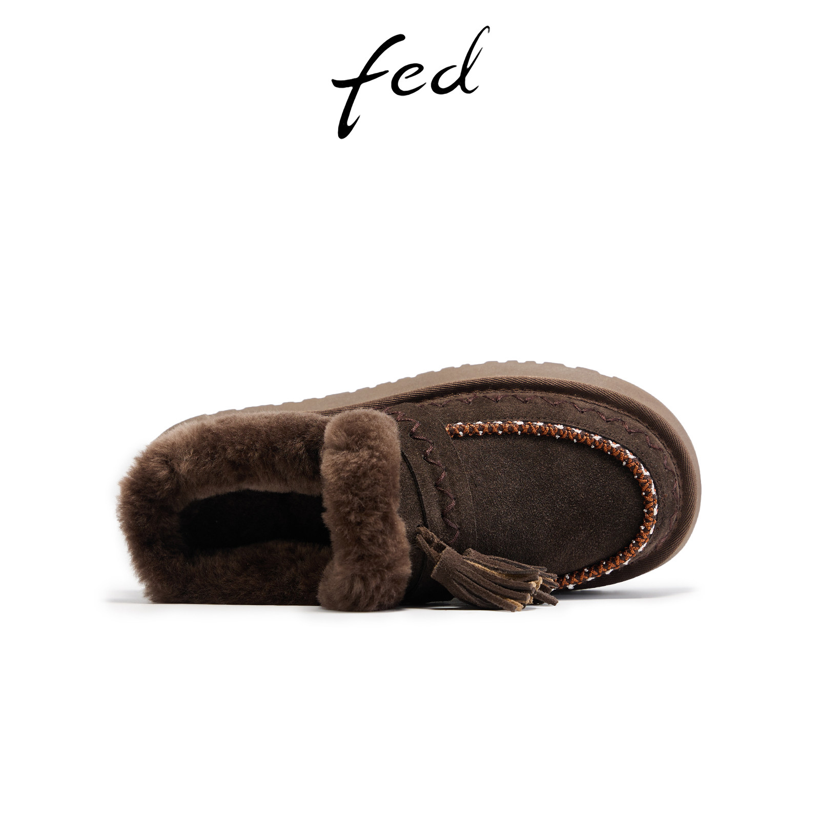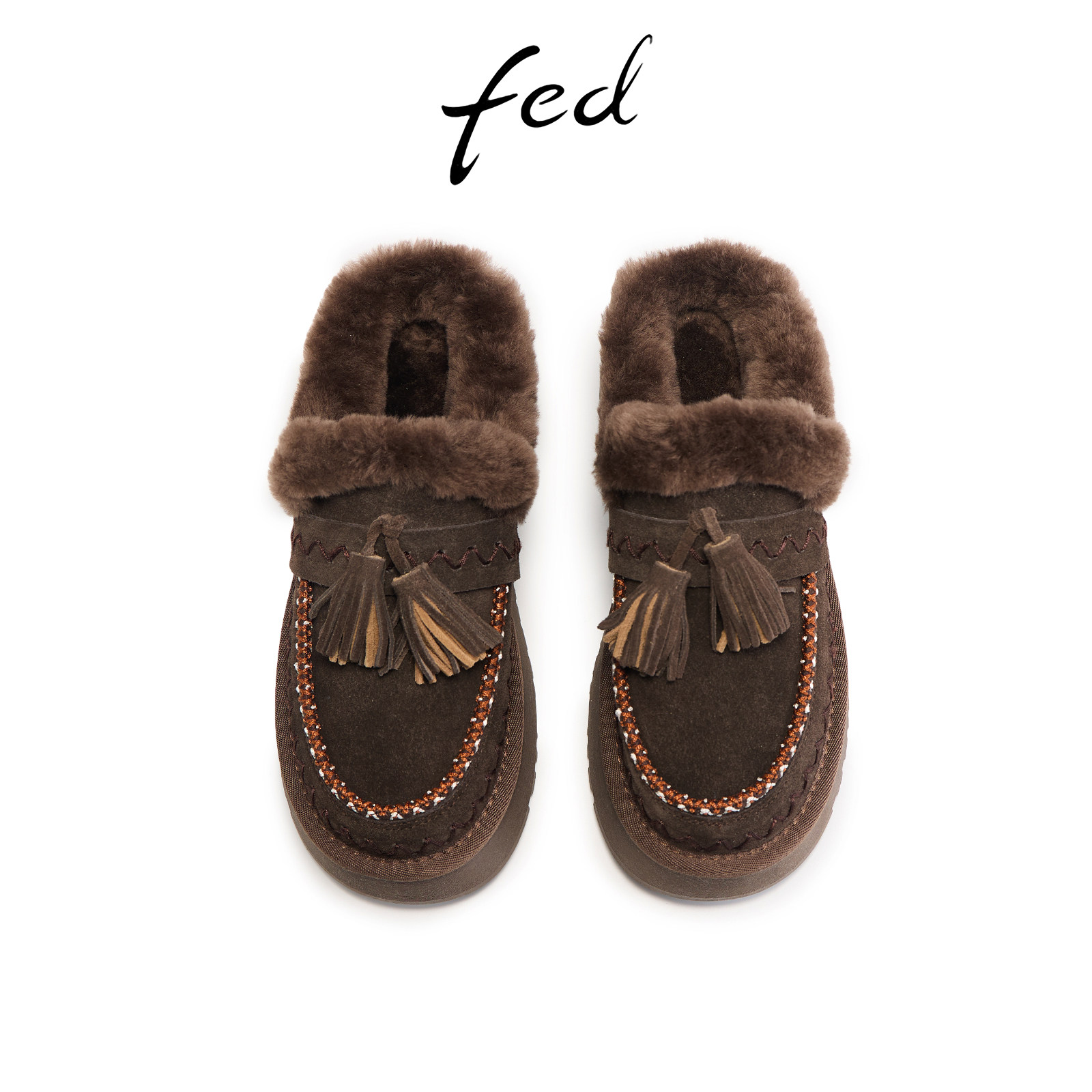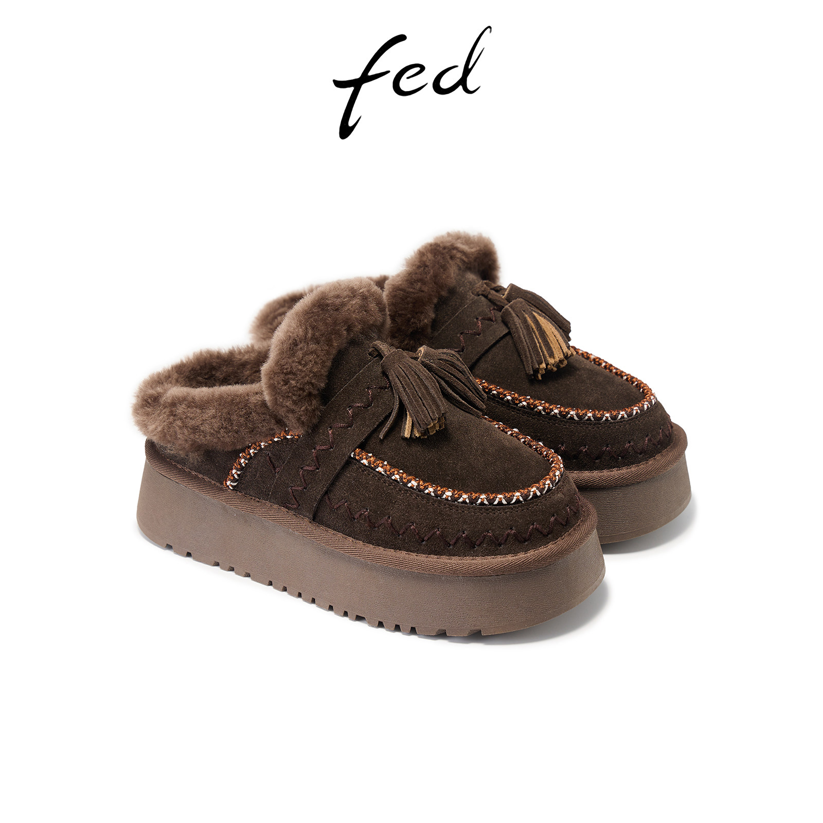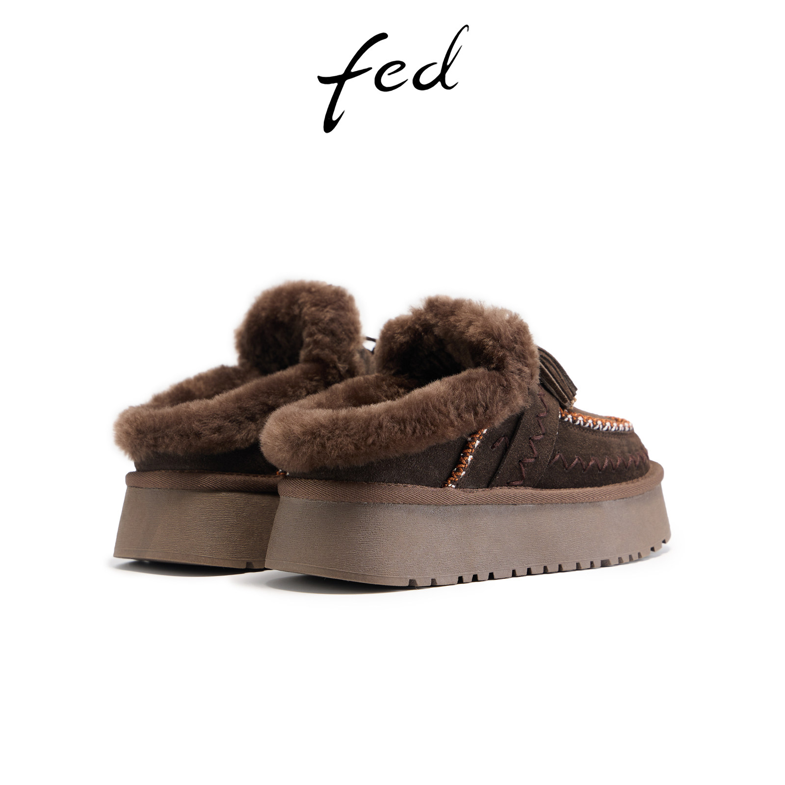 fed厚底勃肯鞋冬季新款女鞋加绒雪地靴毛毛拖鞋女款S1028-YAB156