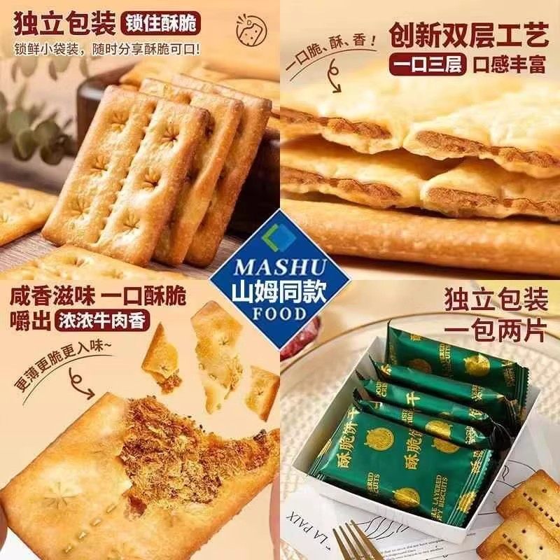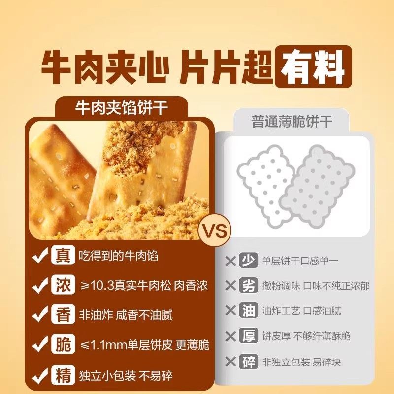 牛肉馅酥脆饼干官方旗舰店正品肉松夹心网红解馋零食早餐好吃健康