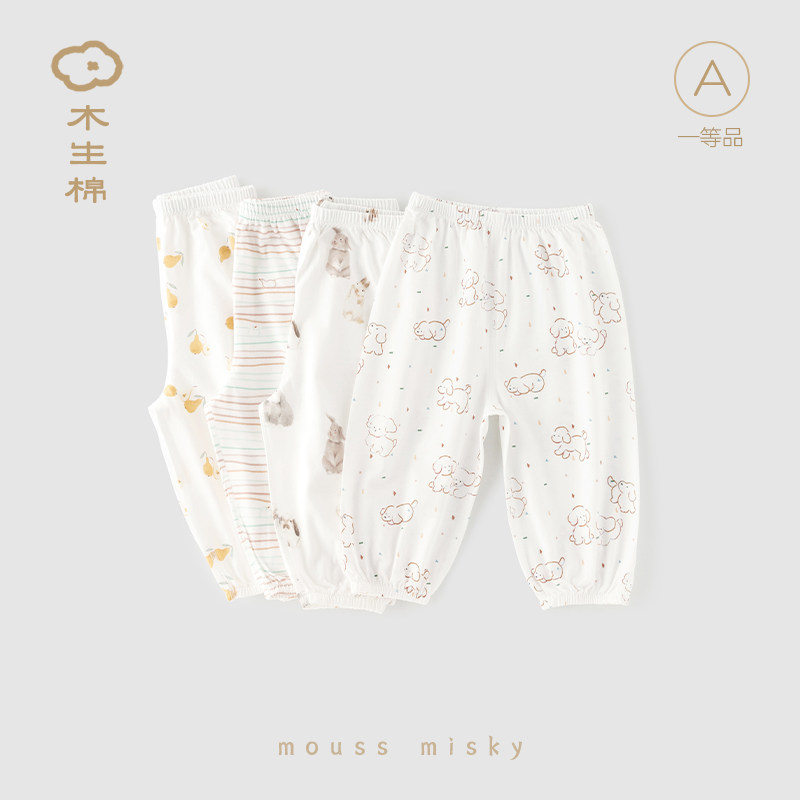 木生棉婴儿夏季薄款长裤男女宝宝外出防蚊裤纯棉透气束脚裤子夏装