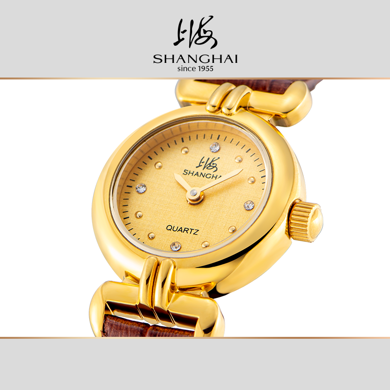 上海手表女款复古小金色表轻奢时尚皮带石英腕表官方旗舰店