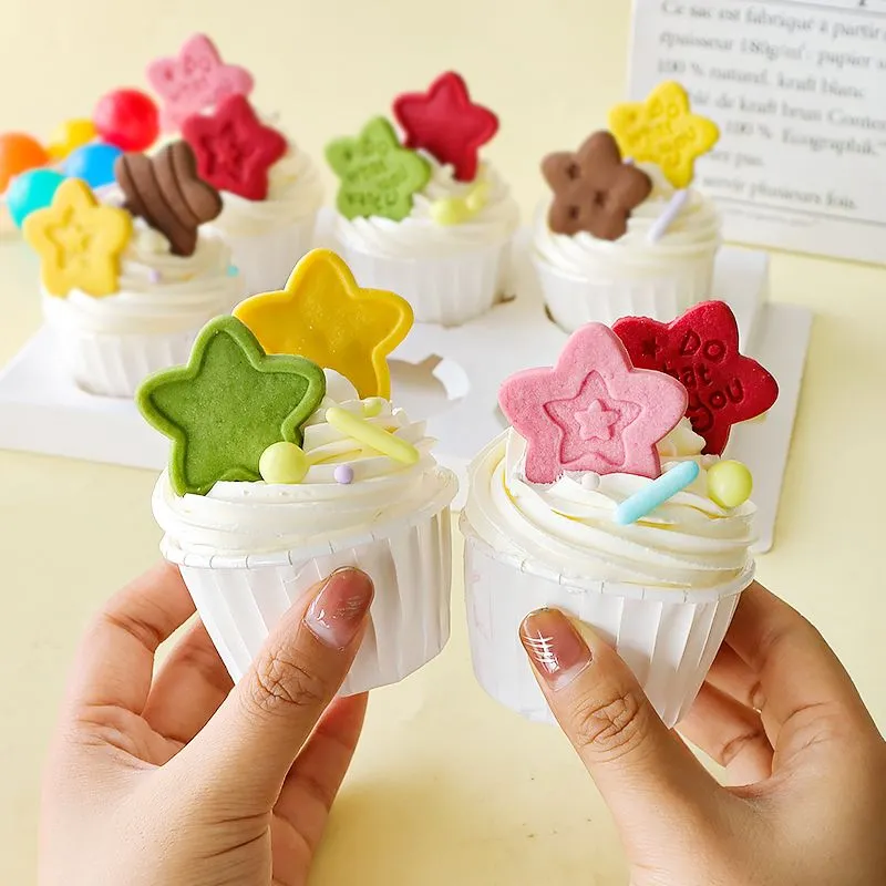 星星饼干 干蛋糕装饰彩色五角星摆件冰淇淋纸杯甜品烘焙插件可食