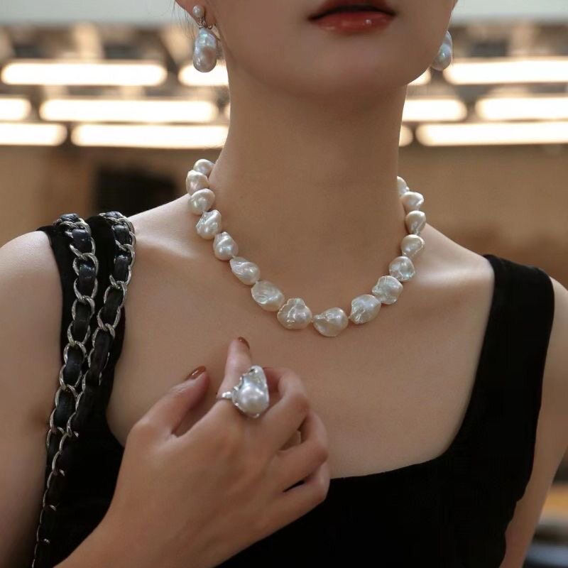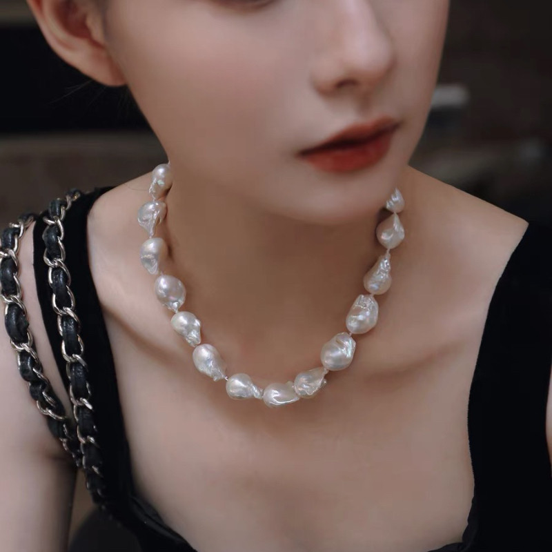 诸暨淡水珍珠巴洛克项链女炫彩大巴异形颈链高级欧美风锁骨链礼物