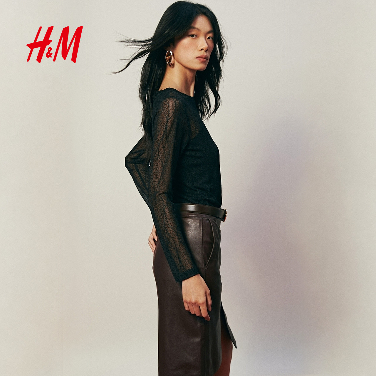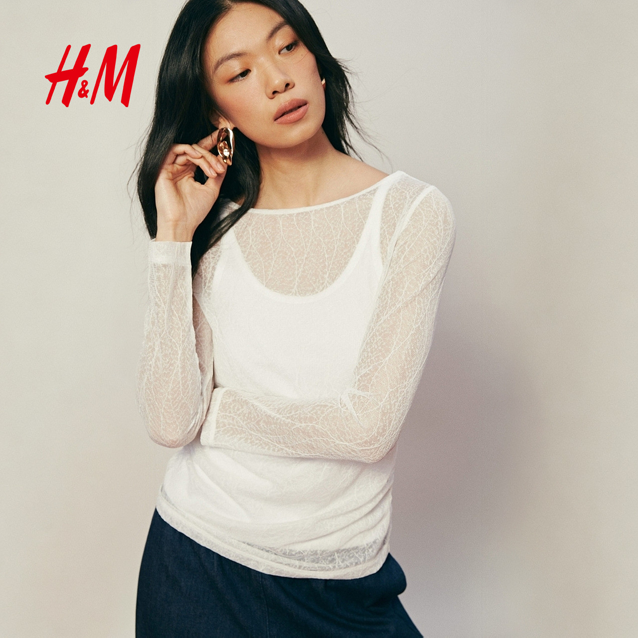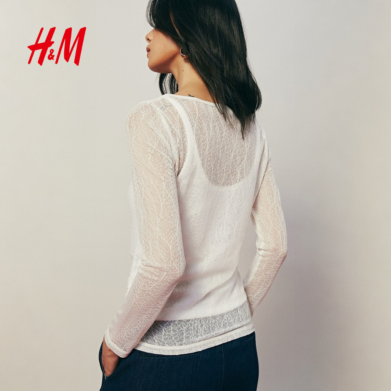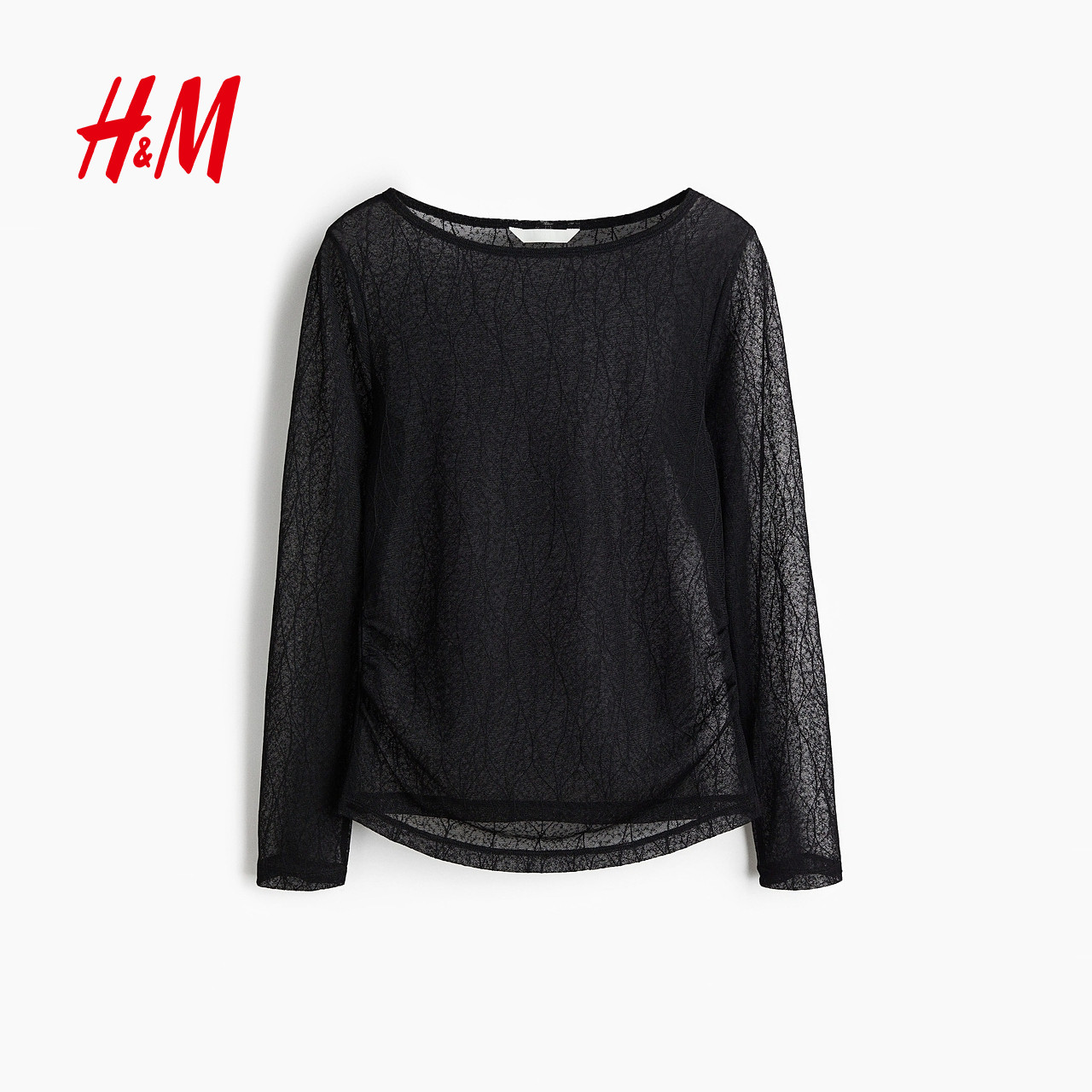 HM2025冬季新款女装垂褶蕾丝上衣1312630