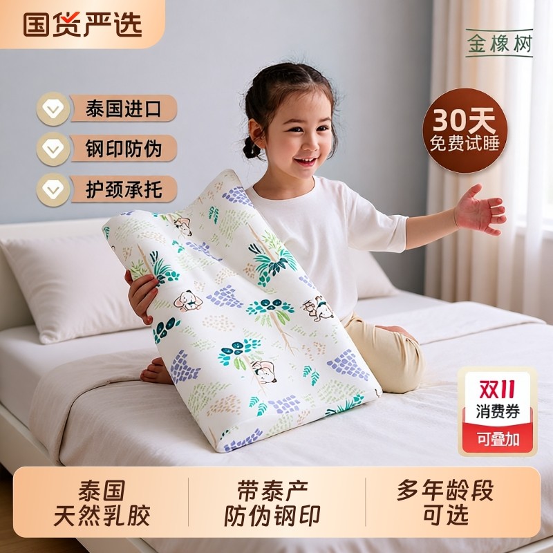 金橡树儿童乳胶枕头泰国天然橡胶小孩学生青少年专用幼儿园宝宝枕
