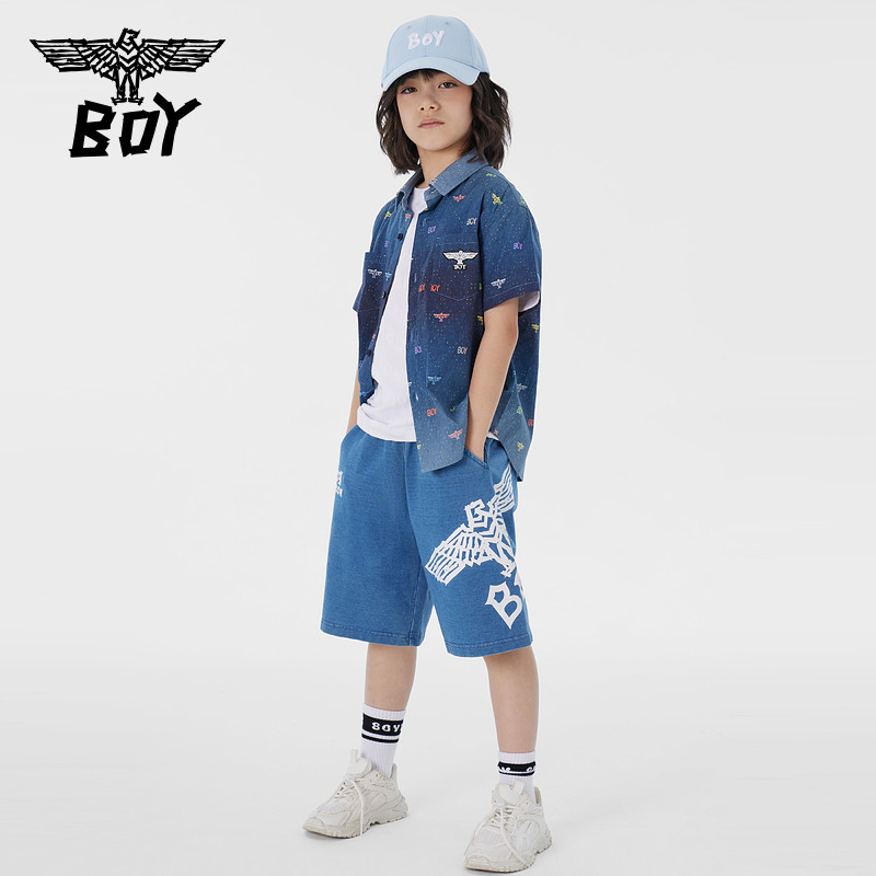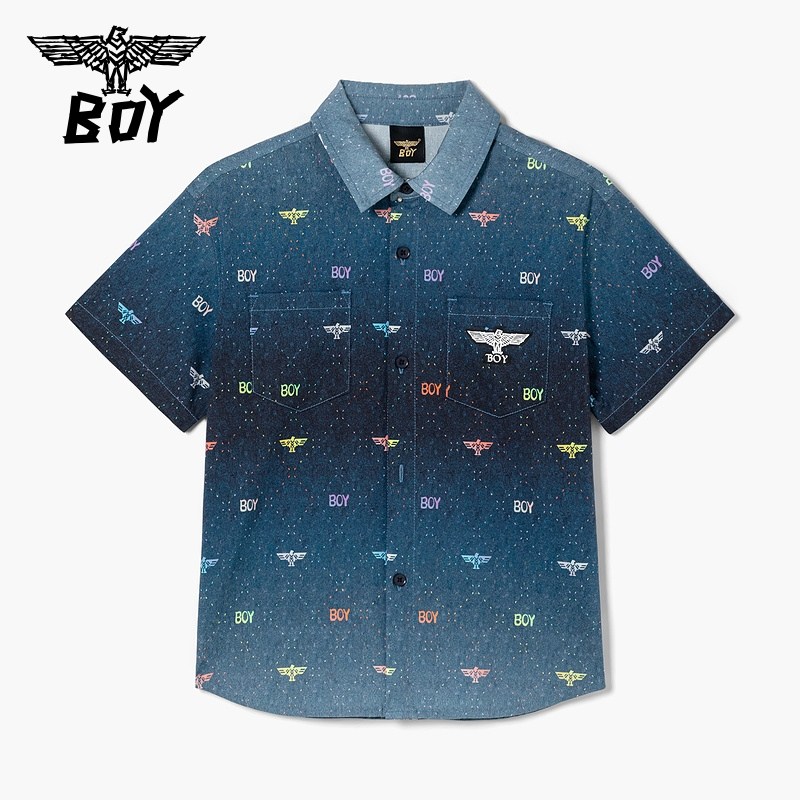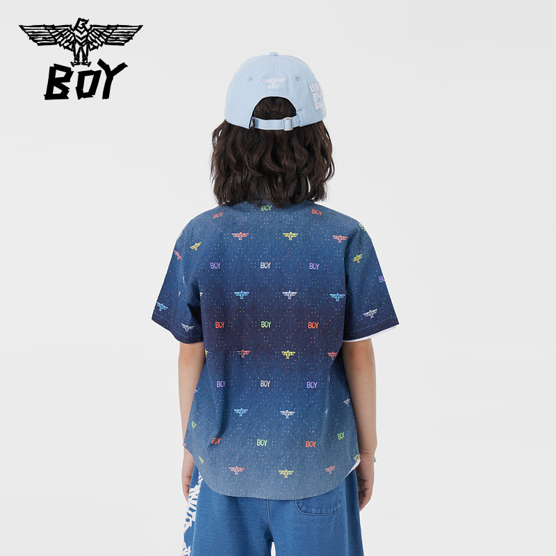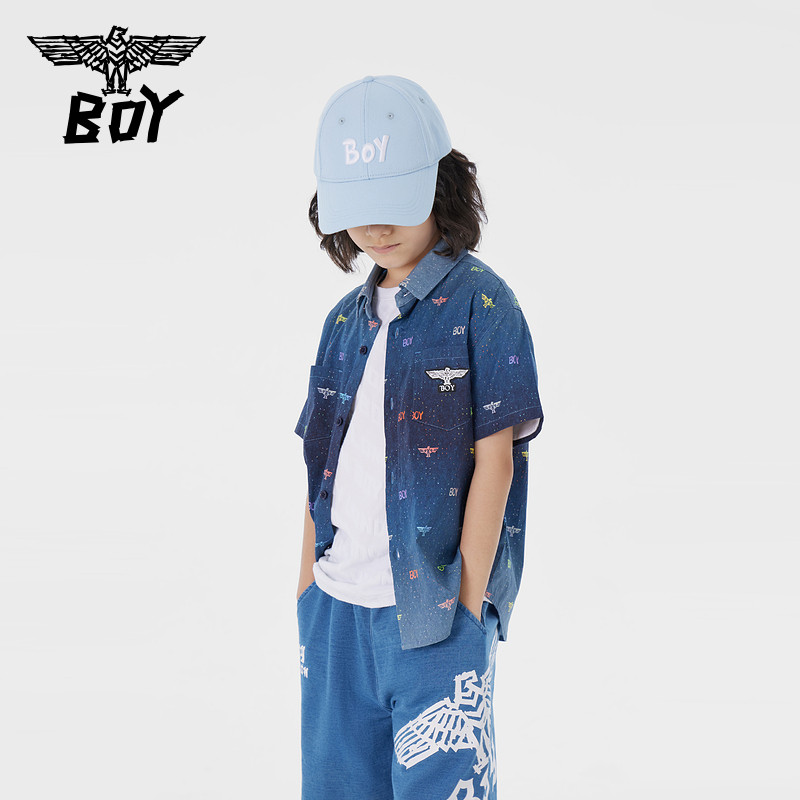 BOY 童装儿童短袖衬衫春夏字母印花深蓝牛仔色上衣男童女童