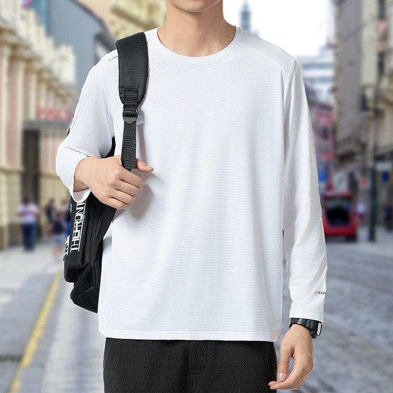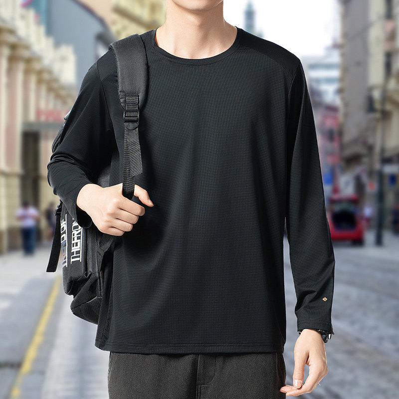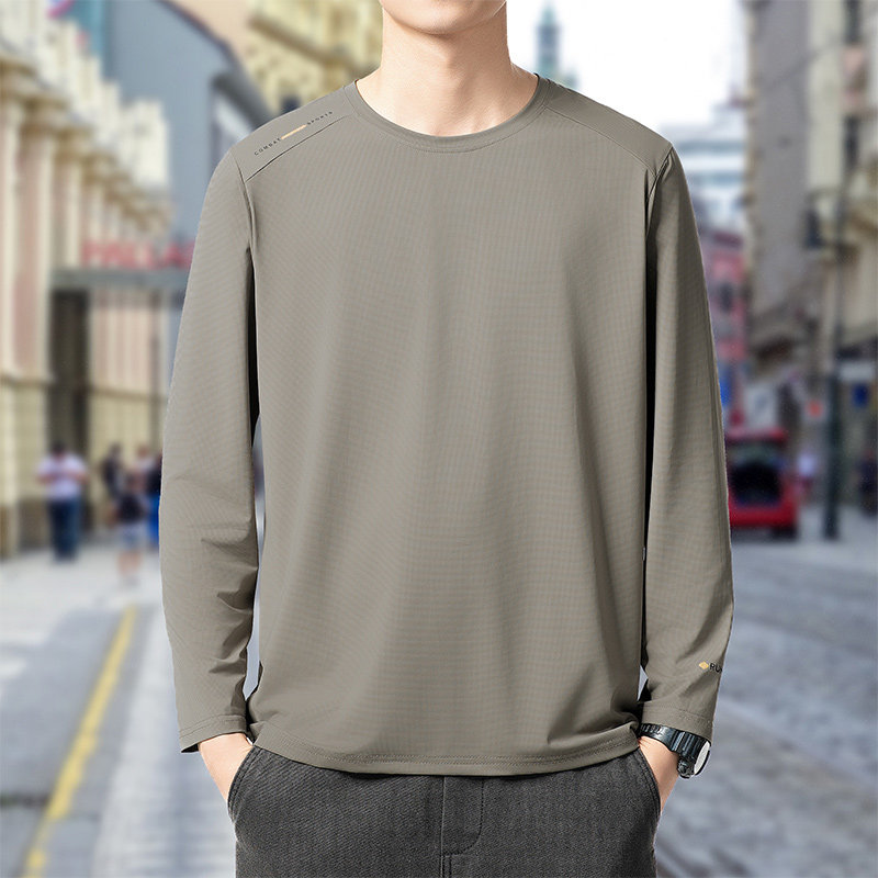 长袖T恤男士2025新款秋季运动速干冰丝圆领加肥加大码胖子体恤潮