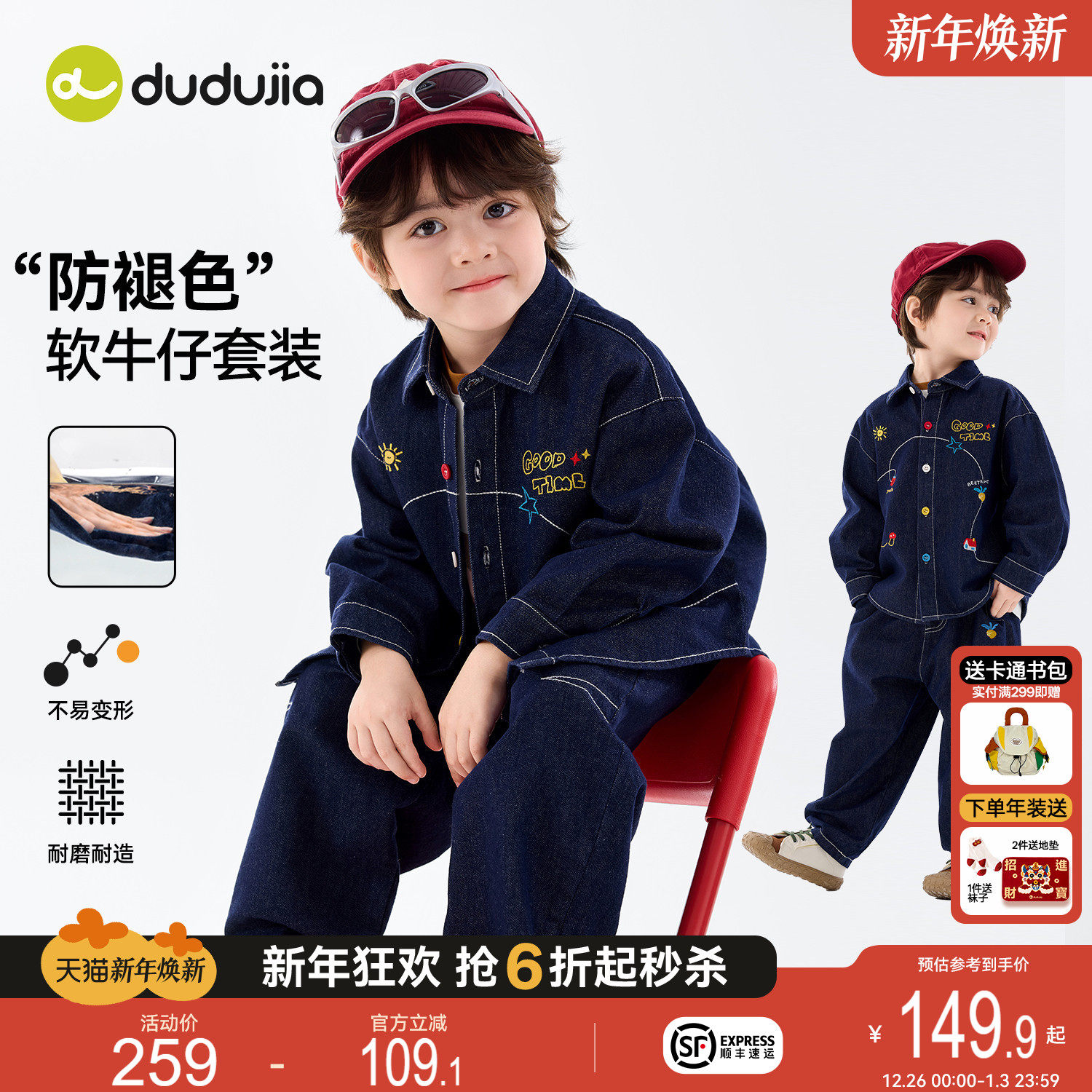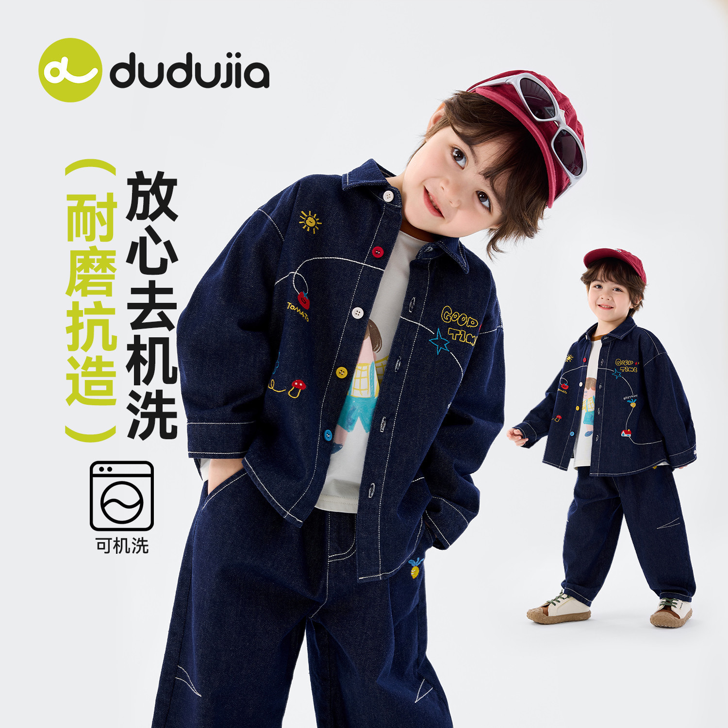 嘟嘟家男童牛仔套装春秋儿童外套裤子女童长裤韩版宝宝休闲裤春装