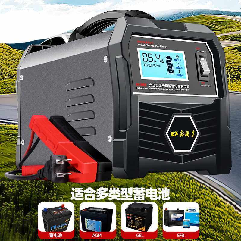 纯铜汽车电瓶充电器12v24v智能全自动大功率蓄电池充电机充满自停