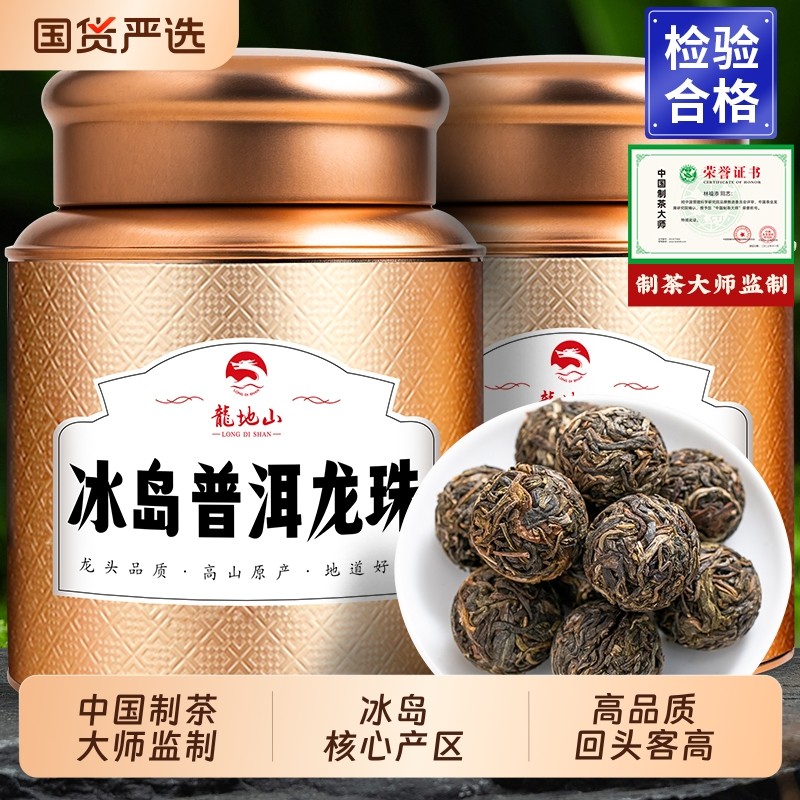 龙地山冰岛普洱生茶龙珠茶叶云南生普沱茶古树罐装龙珠春茶叶500g