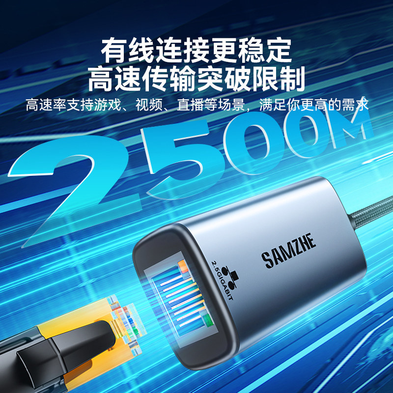 山泽usb转网口千兆网卡有线转接口type-c外置宽带网线转换器扩展坞转接头适用于mac电脑笔记本台式机