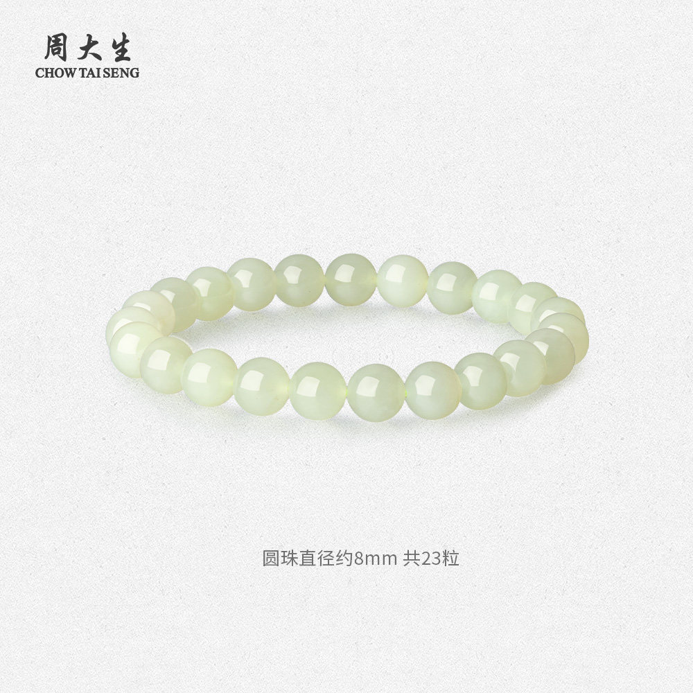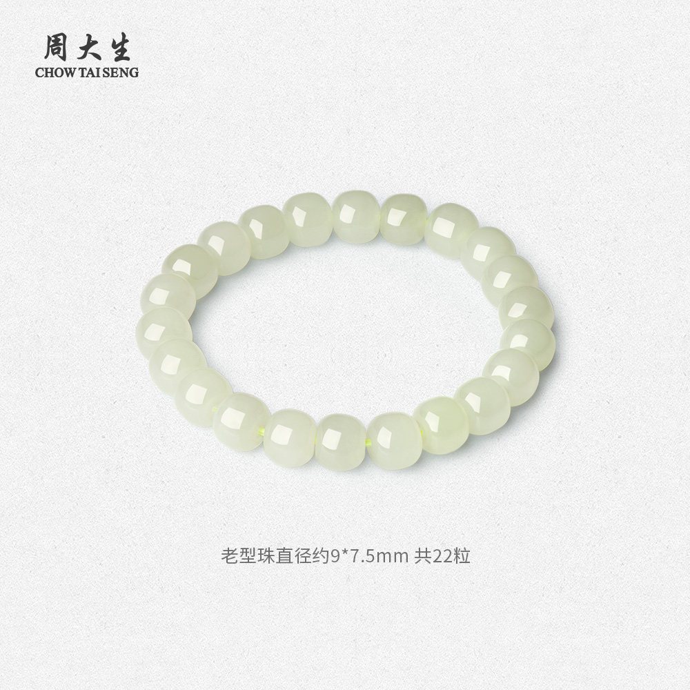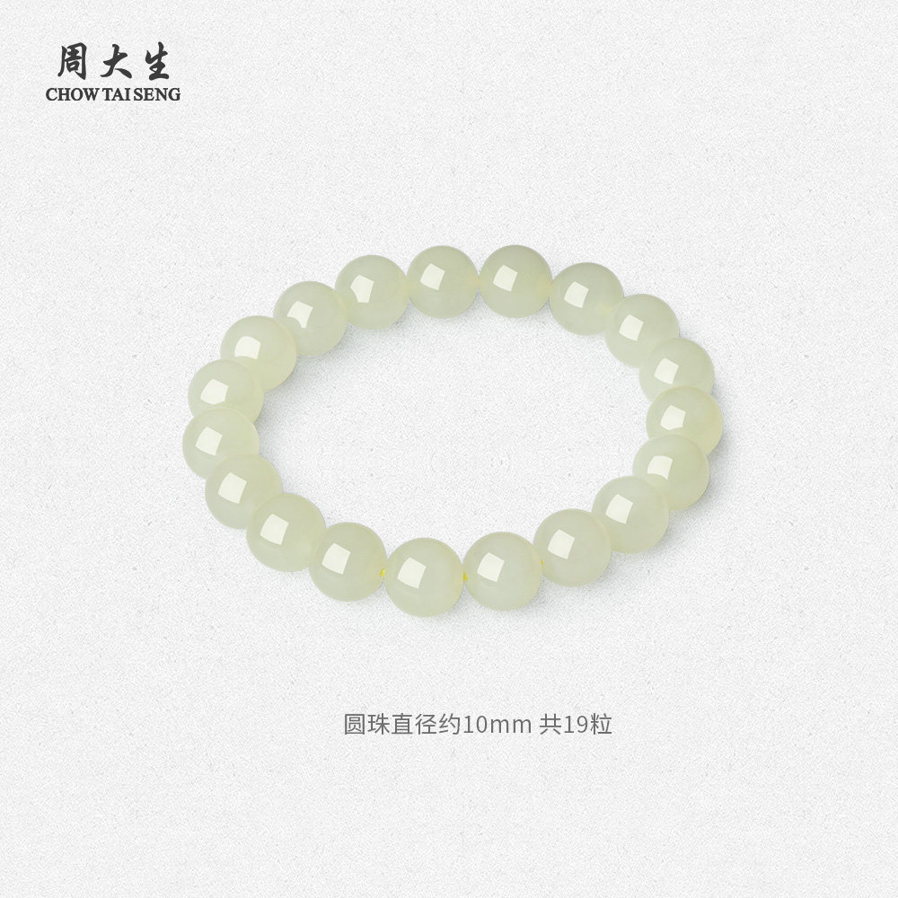周大生和田玉手串男女青韵老型珠圆珠情侣款手链生日礼物送女朋友