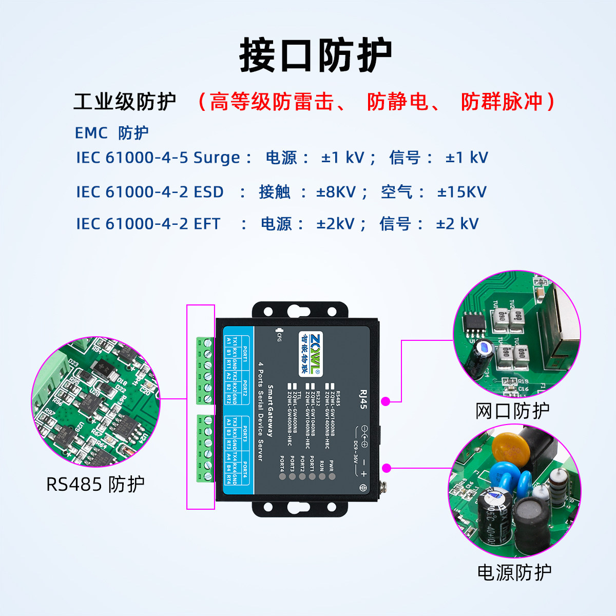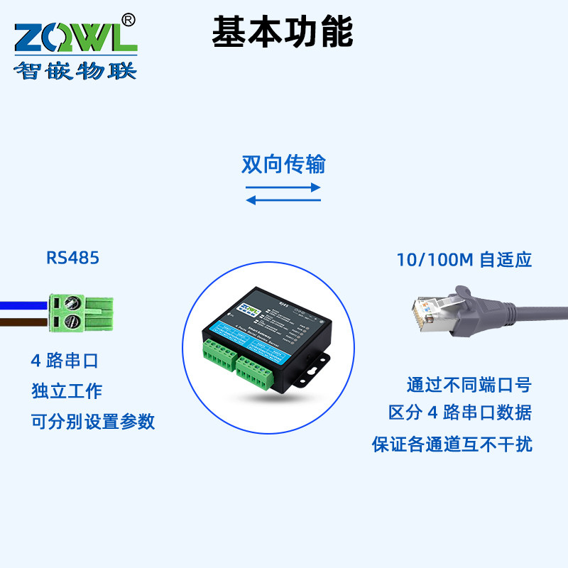 智嵌物联4路串口服务器rs485转以太网模块mqtt/http通讯串口转网络json格式modbus网关tcp/rtu互转数据采集