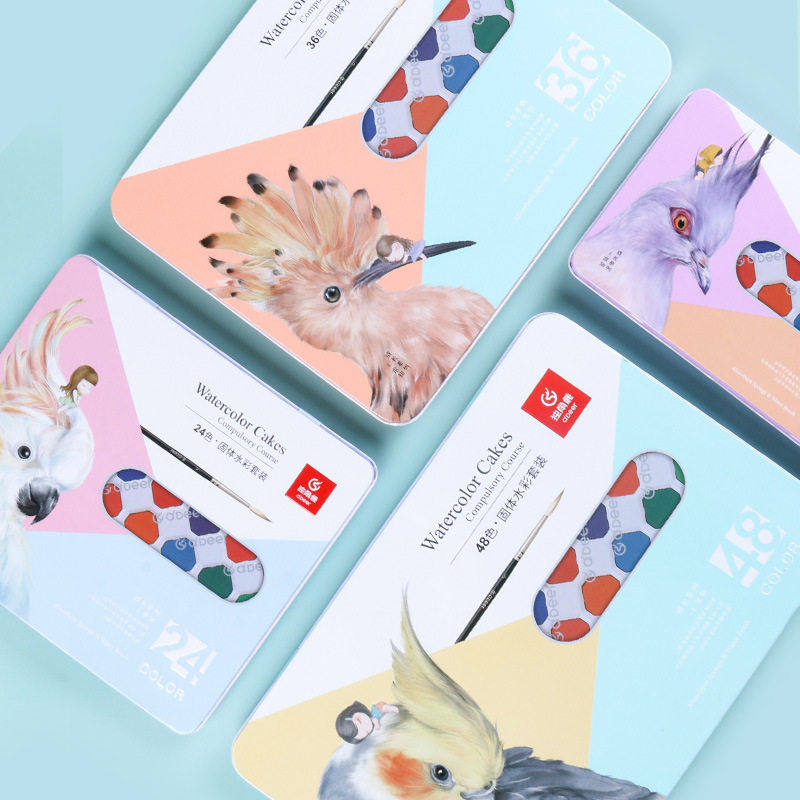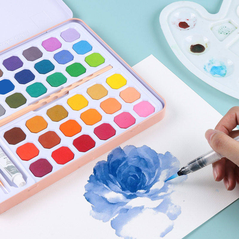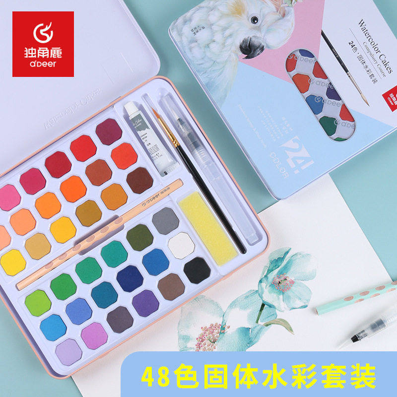 独角鹿36色固体水彩颜料初学者手绘水粉饼幼儿园儿童画画用色颜料