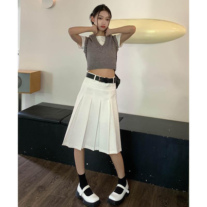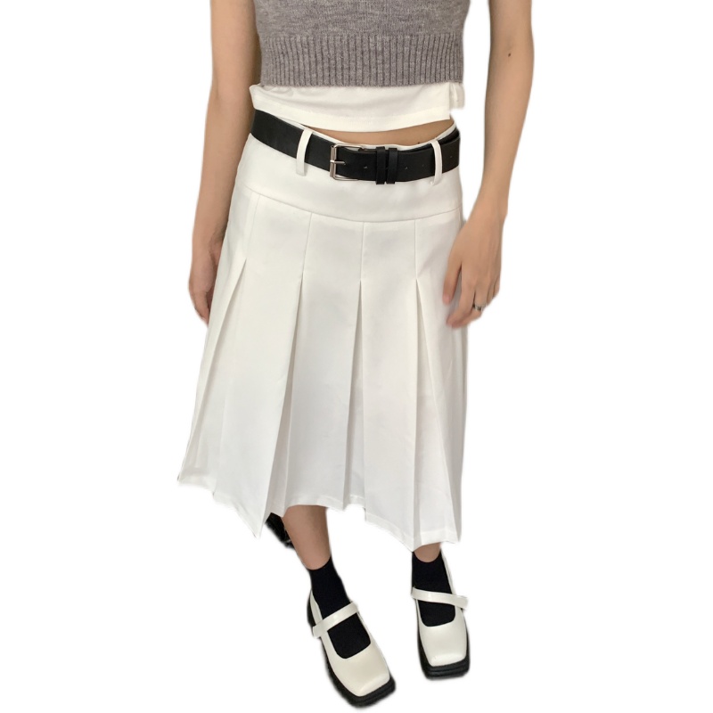 大码高腰白色百褶半身裙裤女中长款秋冬2022新款梨形身材a字长裙