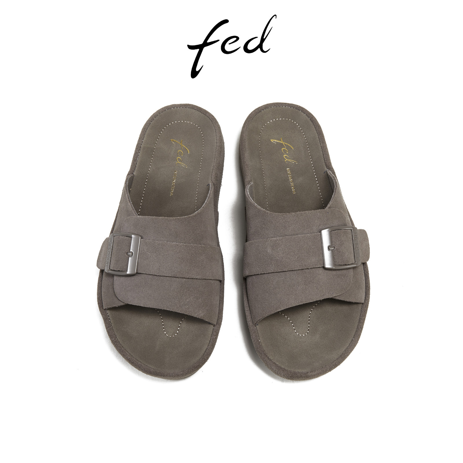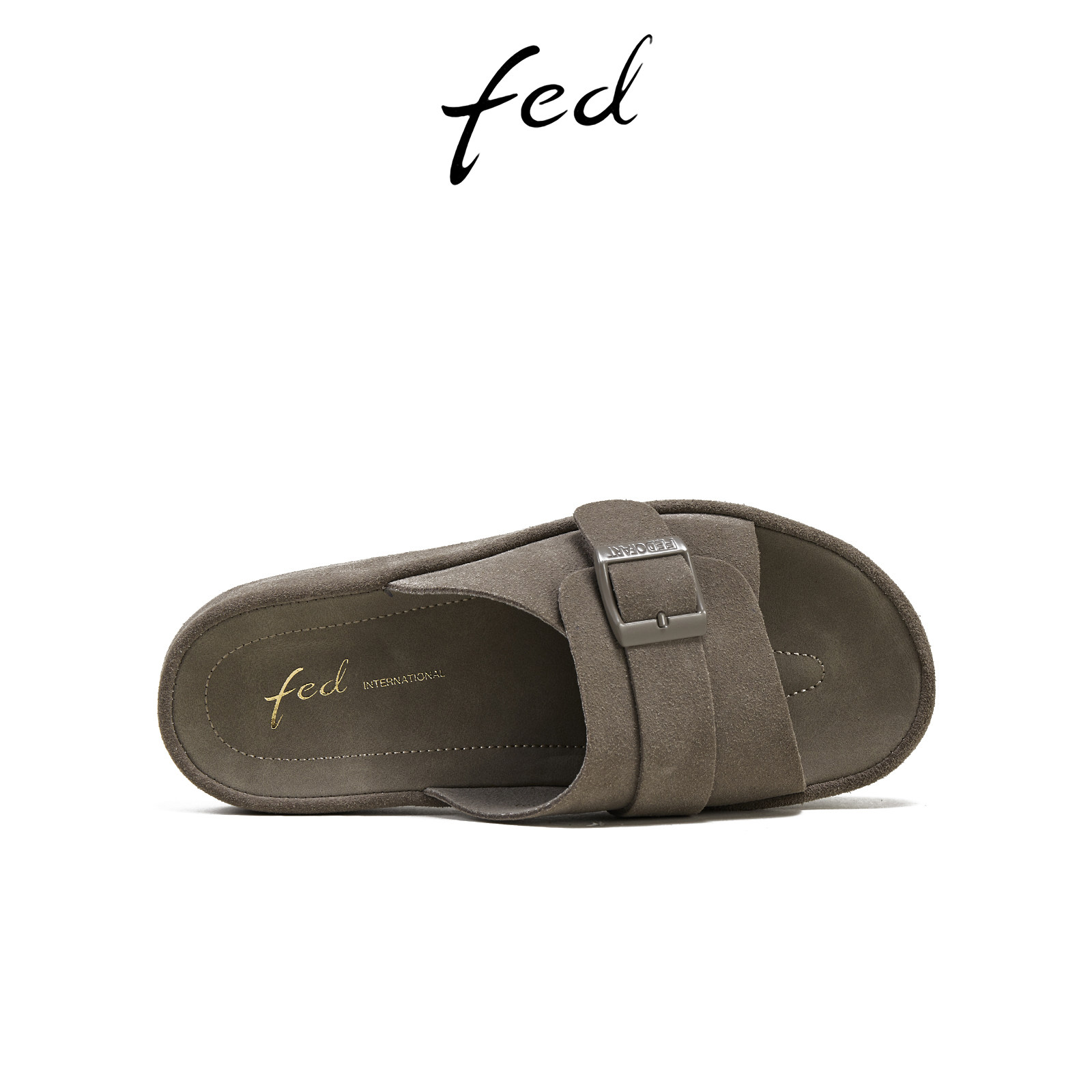 fed真皮一字拖夏季新款女鞋外出懒人拖鞋勃肯凉拖女S0407-YAB203