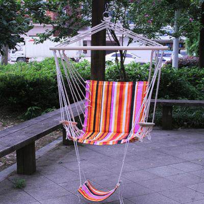 户外秋千吊椅彩条色帆布带棒加脚海绵吊床室内外吊椅折叠秋千椅子