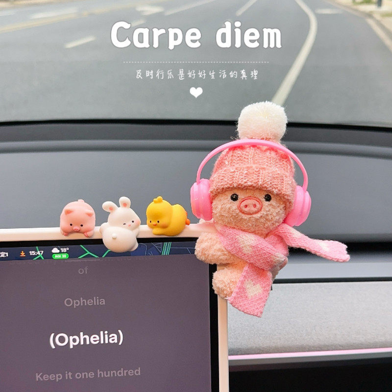 新款汽车摆件毛绒公仔车载中控台屏幕后视镜装饰品车内高级感女生