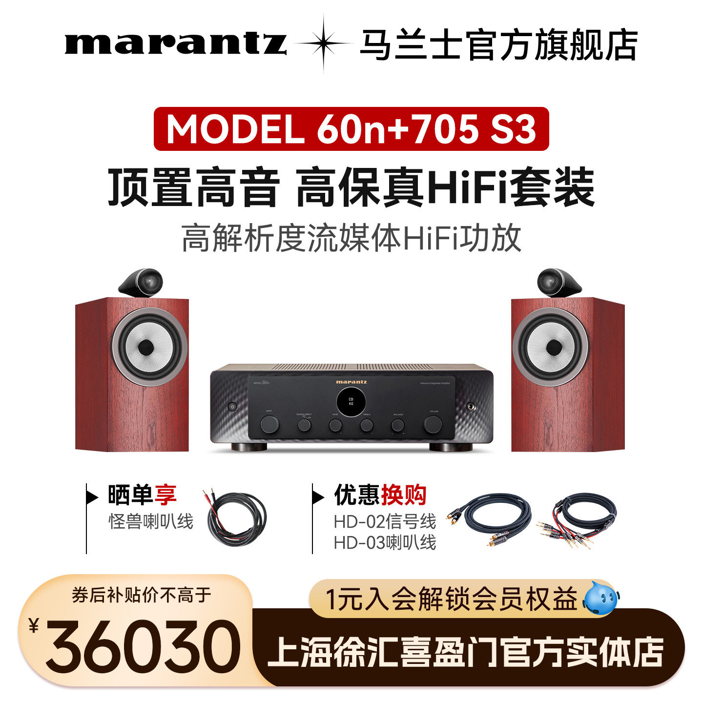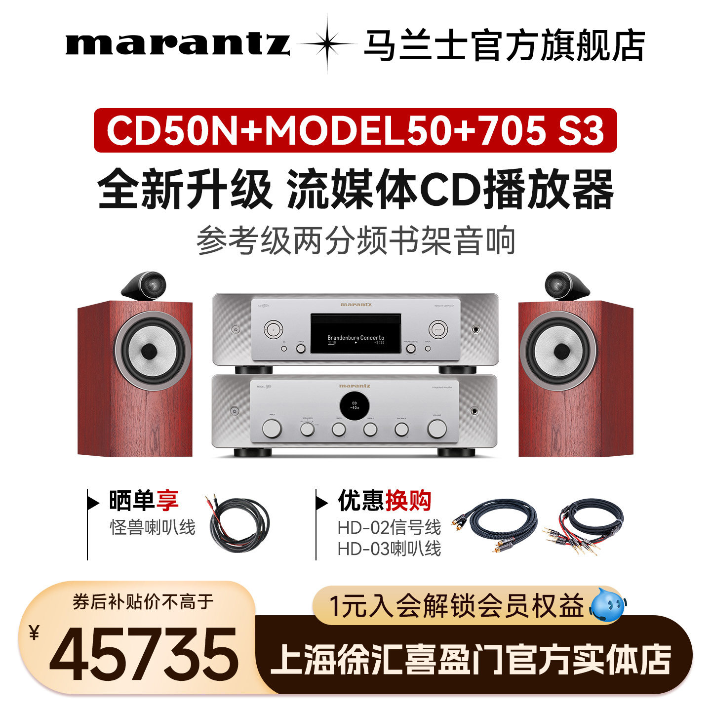 BW宝华韦健705S3无源音箱HiFi书架箱+马兰士网络蓝牙功放音响套装