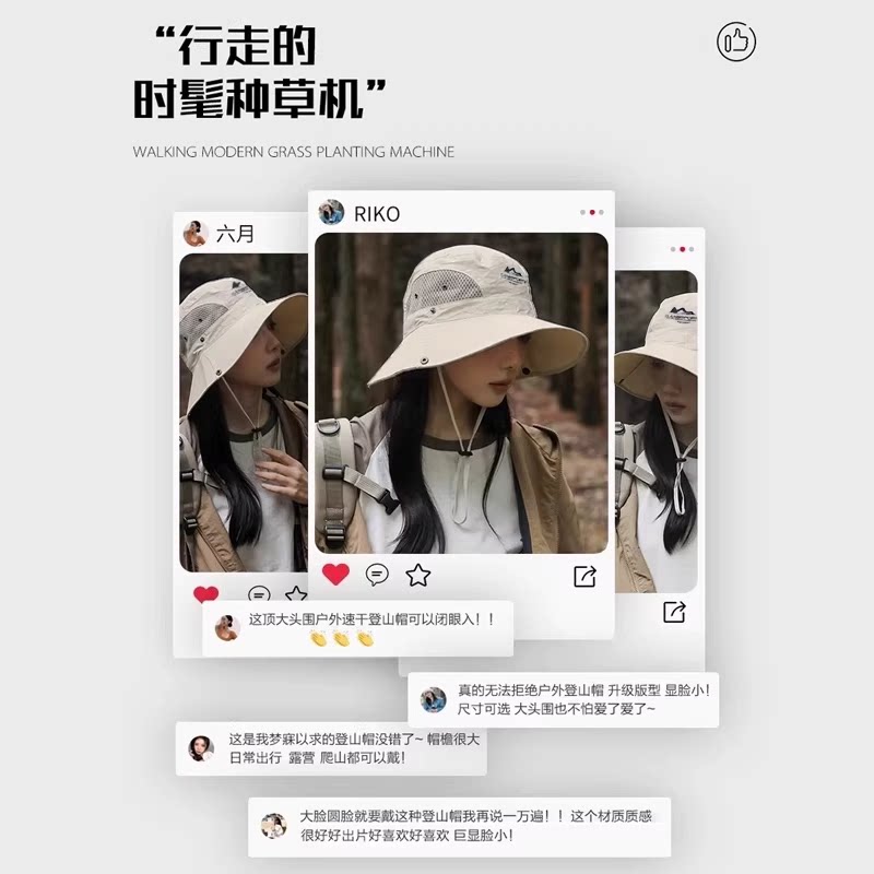 户外登山帽女款2026新款夏天网眼速干徒步露营透气防水牛仔渔夫帽