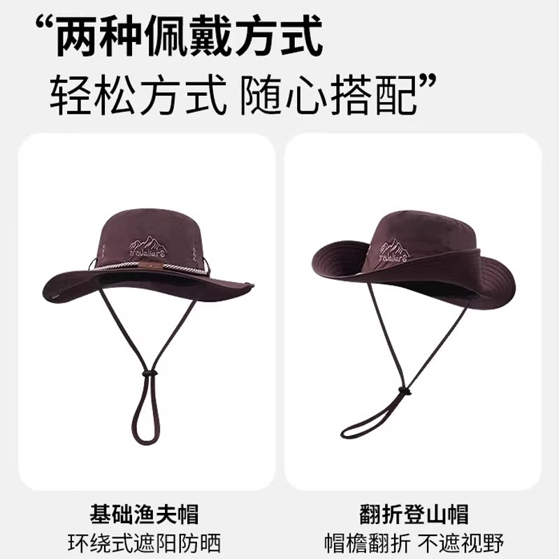 西部牛仔帽男渔夫帽女爬山沙漠防晒帽户外露营遮阳帽子徒步登山帽