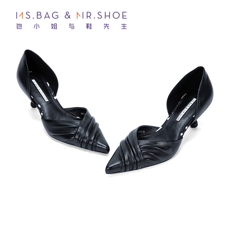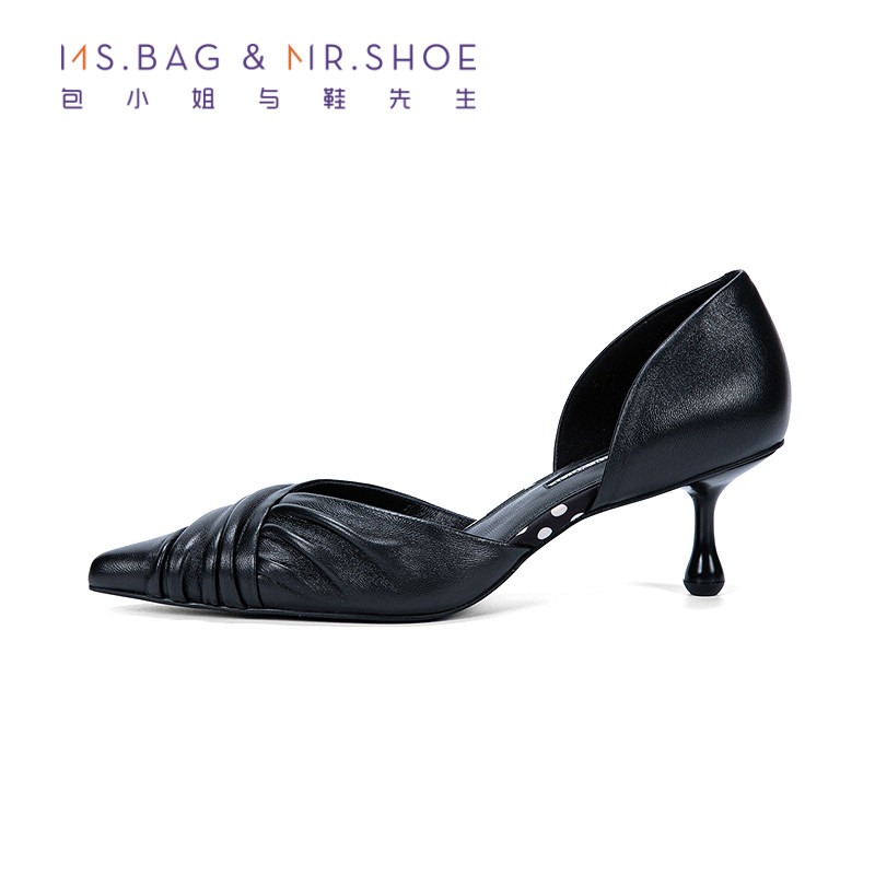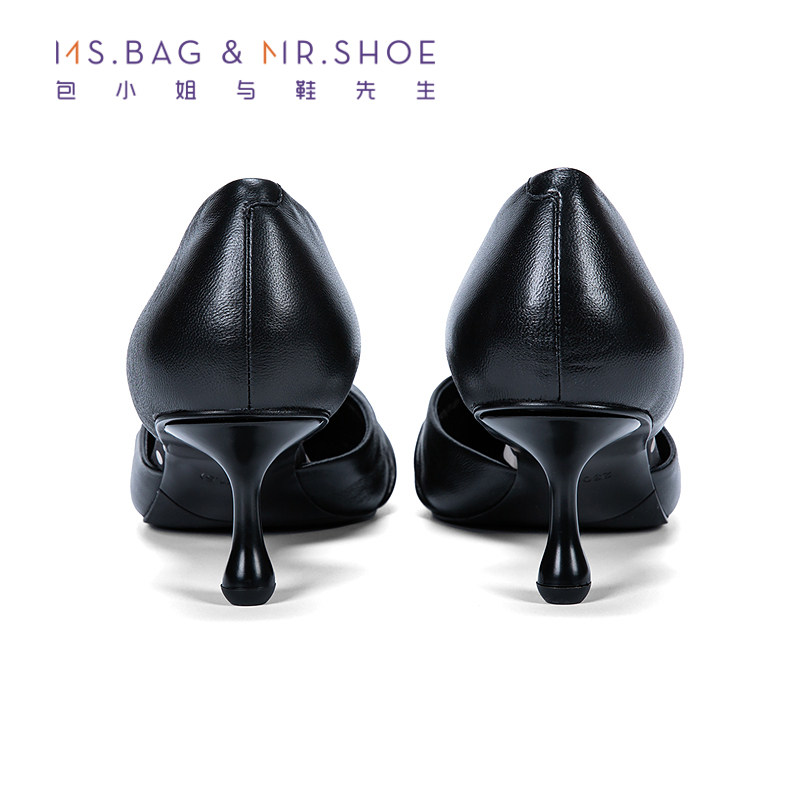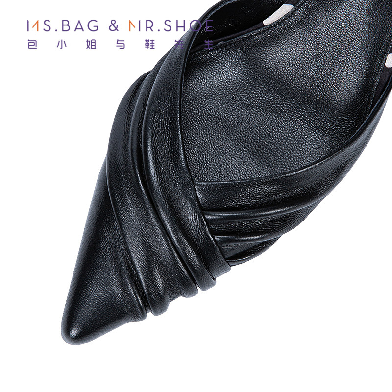 包小姐与鞋先生2026年春季新款简约羊皮褶皱细跟中空凉鞋女261038