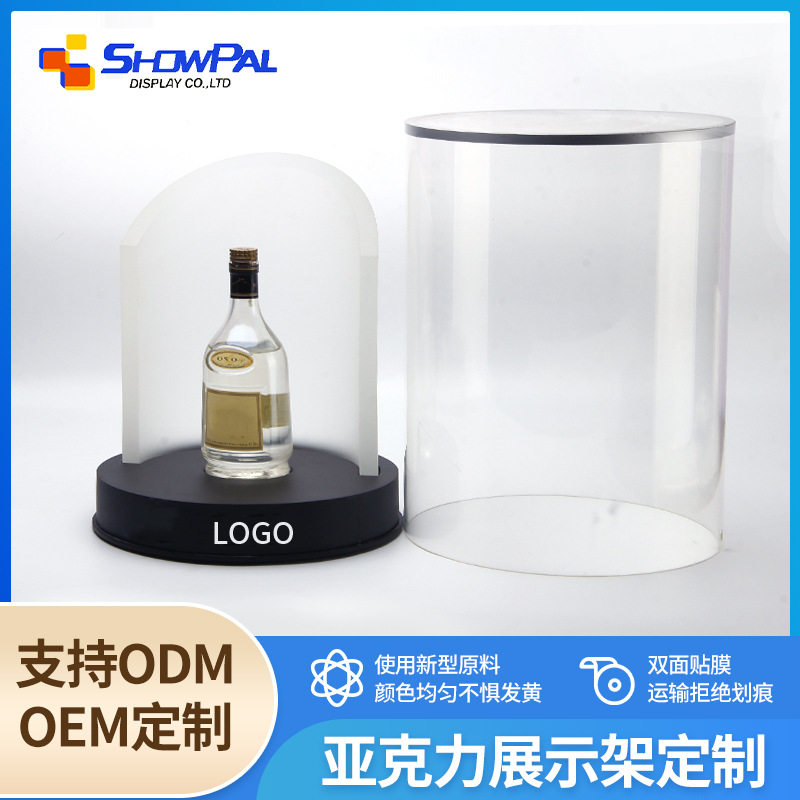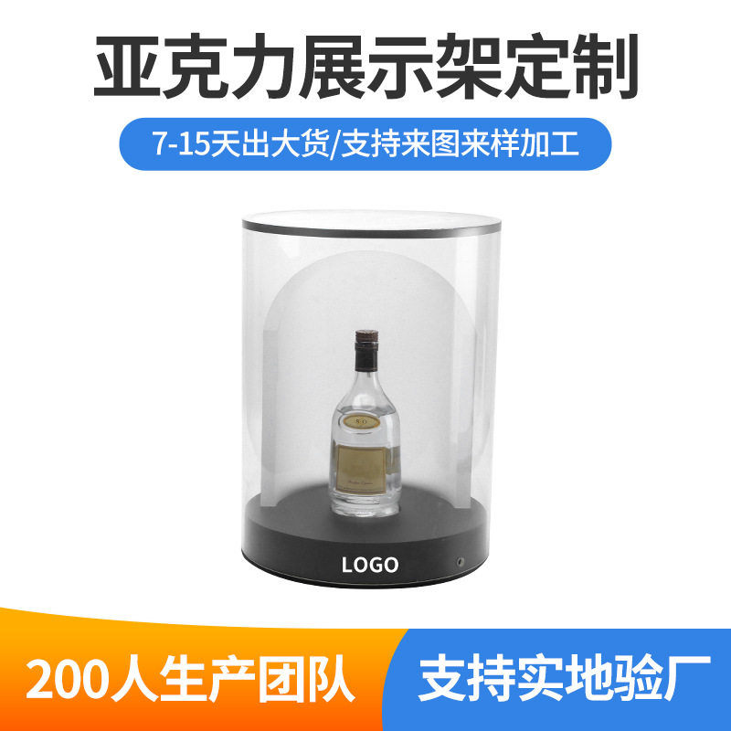 来图定制亚克力洋酒展示架酒吧LED白酒展示台圆形防尘盖酒水展台